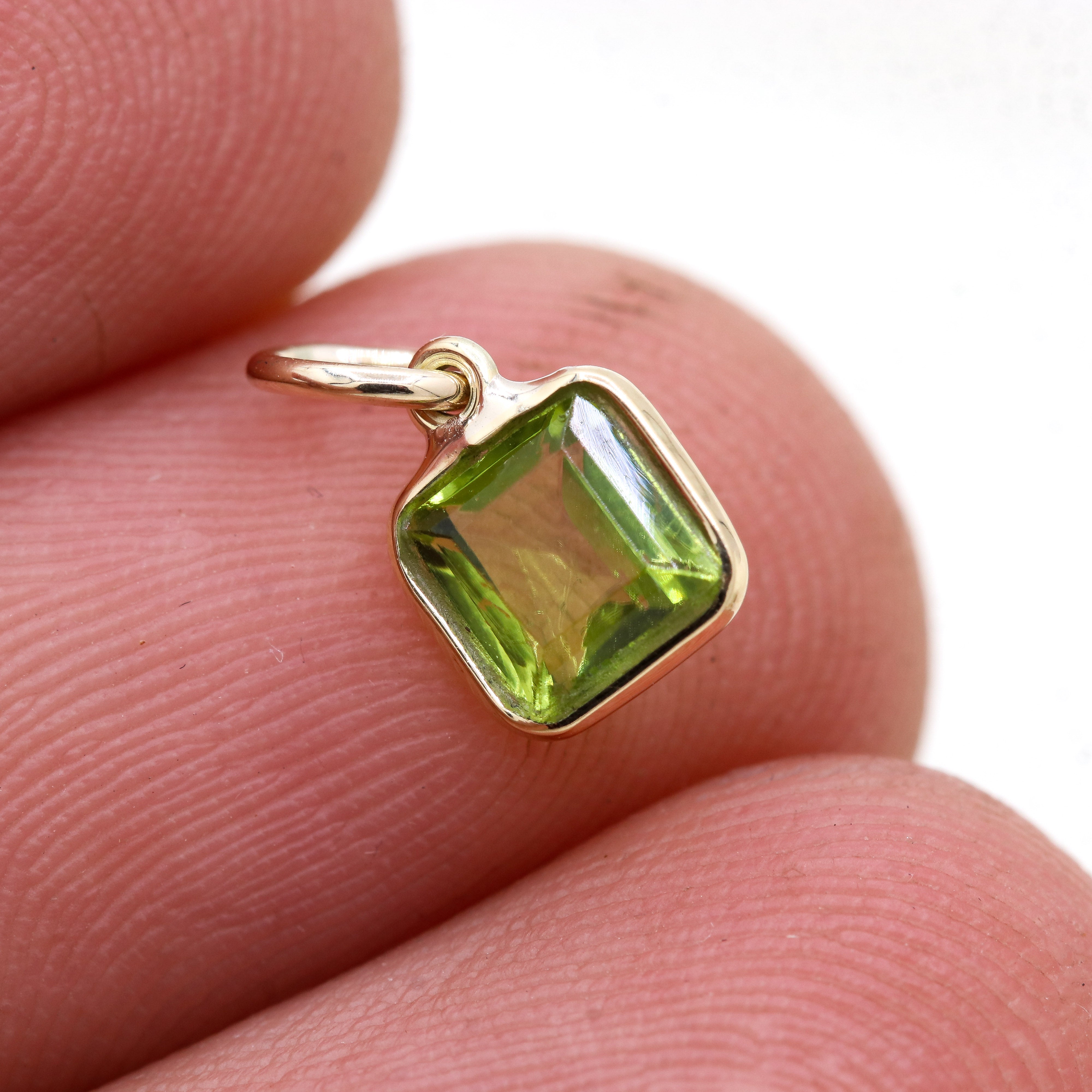 Buy Best Quality Certified Beautiful Natural Peridot Square Shaped Faceted Cut Spiritual Chakra Healing Gemstone Pendant In 14k Yellow Gold