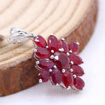 14k White Gold Natural Ruby Gemstone Floral Pendant