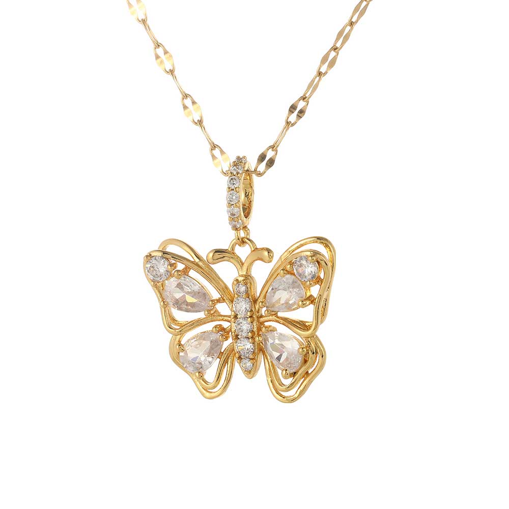 Item Name - 18k Gold Plated Bling Zircon Butterfly Pendant Necklace