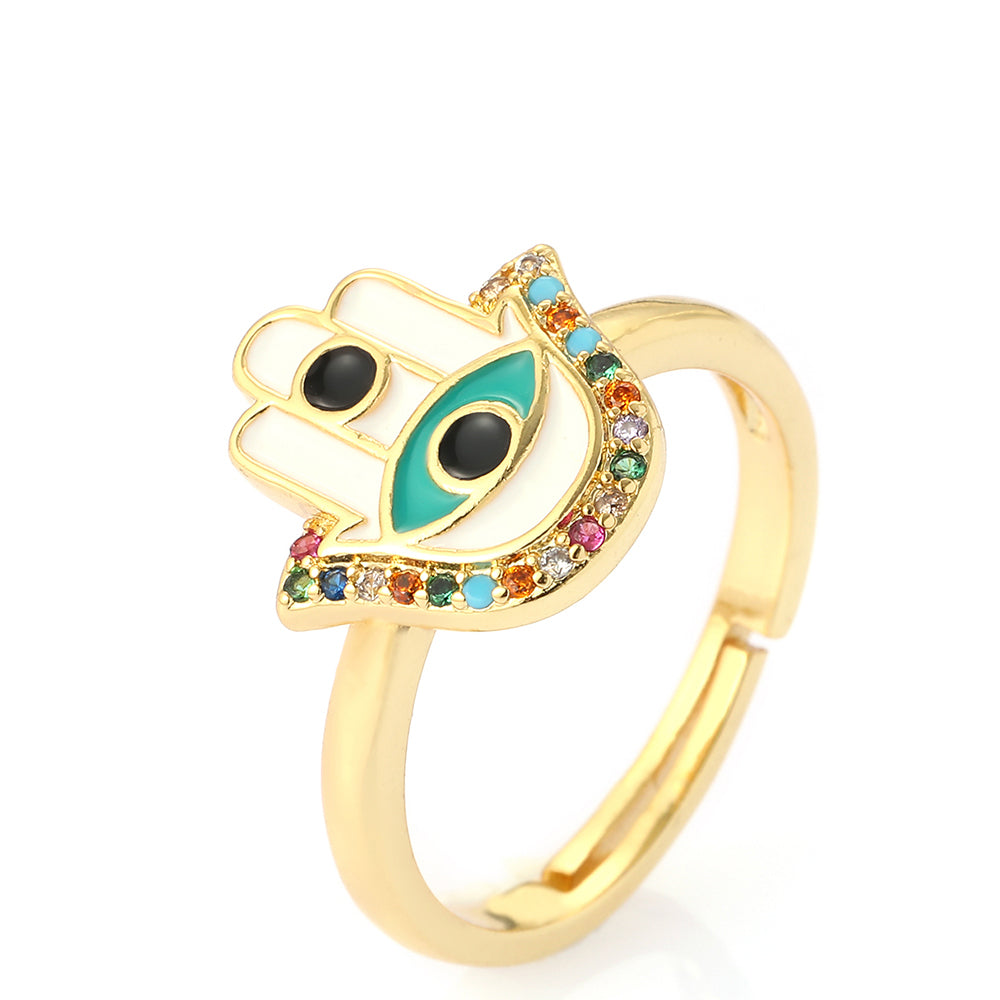 18k Gold Plated White Enamel Hamsa Multi Stone Ring