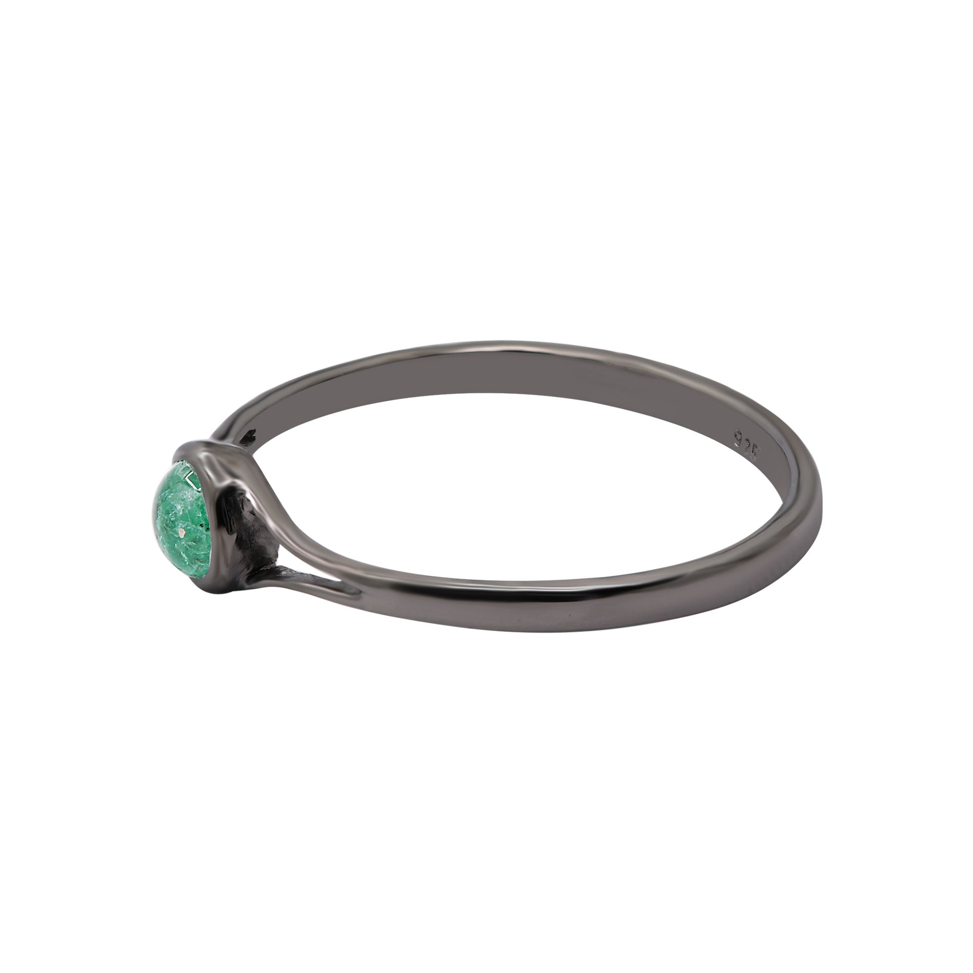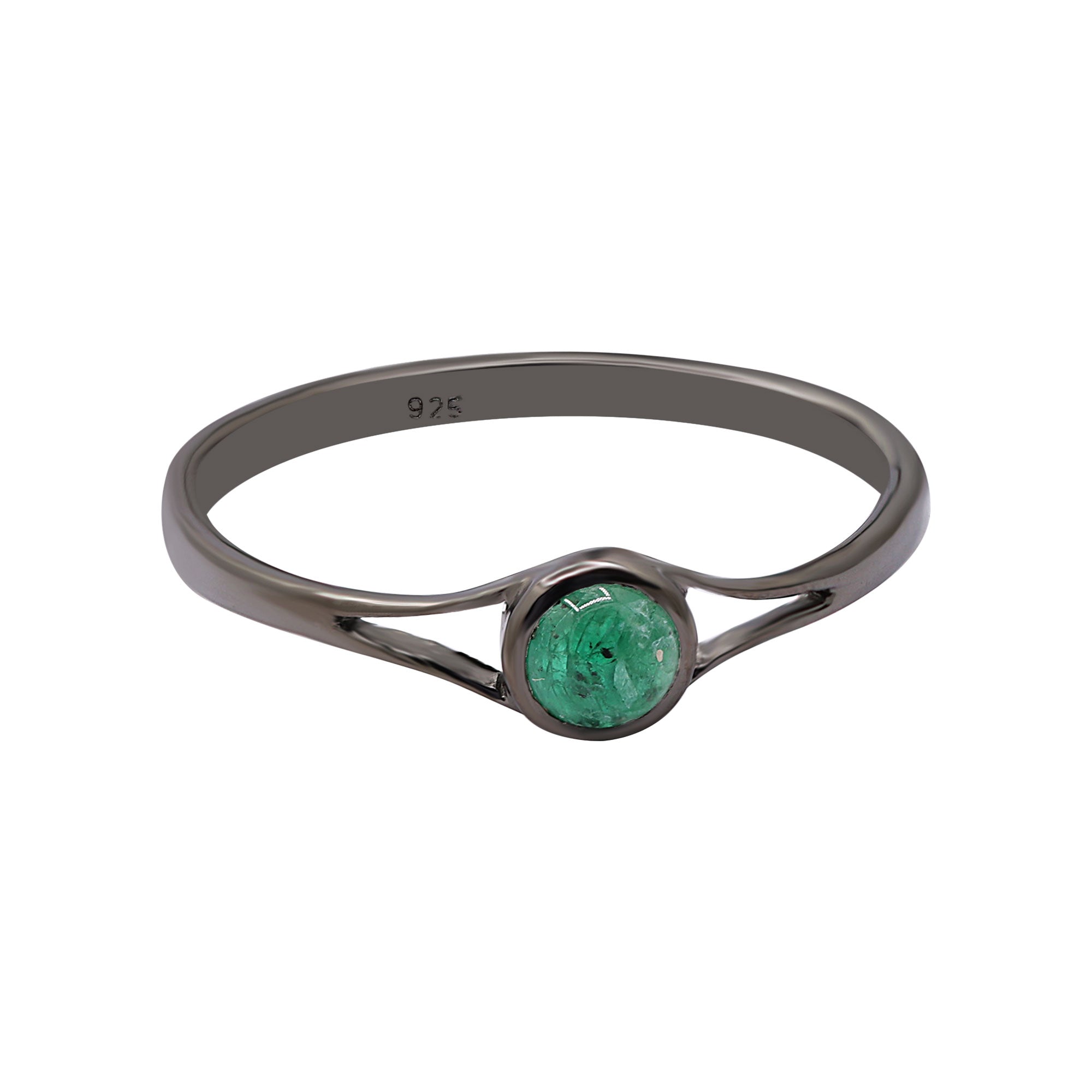 925 Sterling Silver Natural Emerald Gemstone Black Rhodium Plated Ring