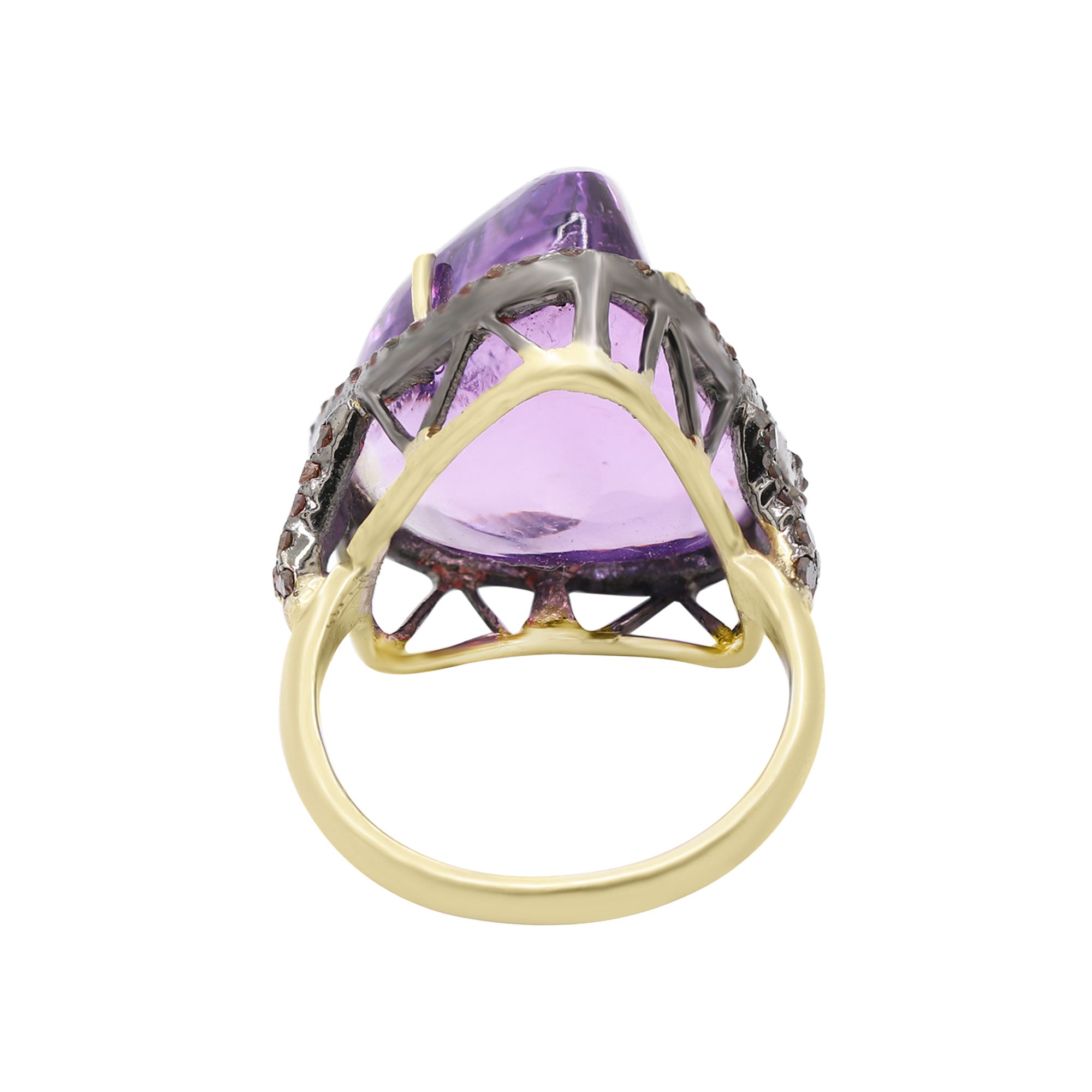 925 Sterling Silver Amethyst Gemstone and Diamond Gold Plated Ring