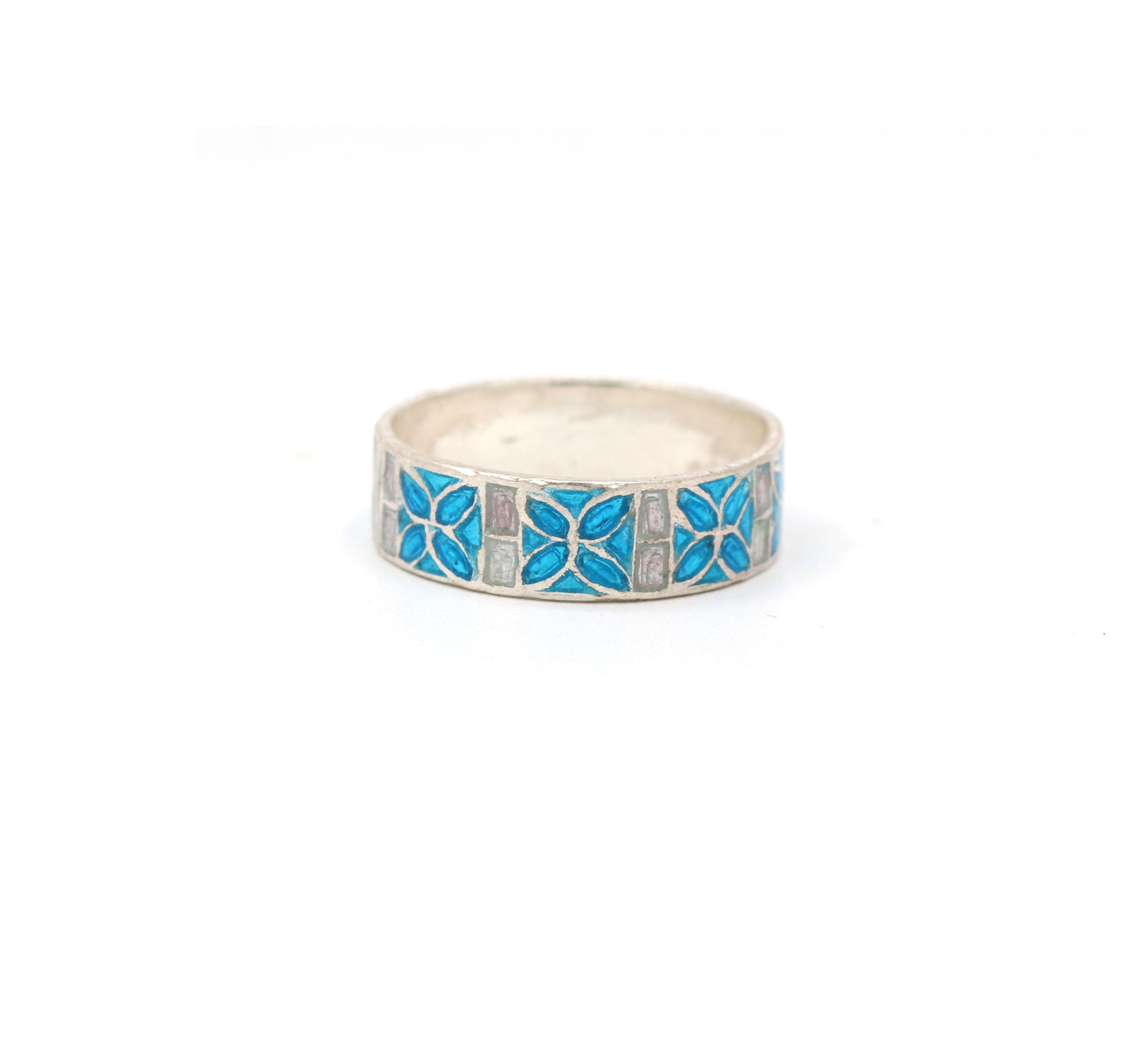Item Type: 925 Sterling Silver Blue And White Enamel Ring