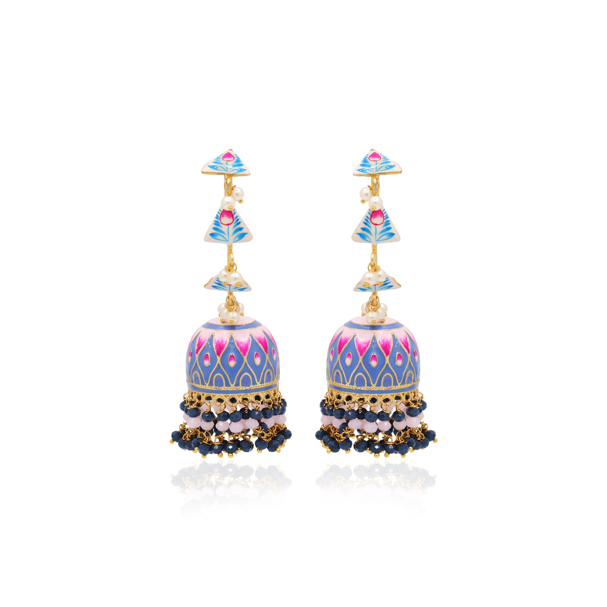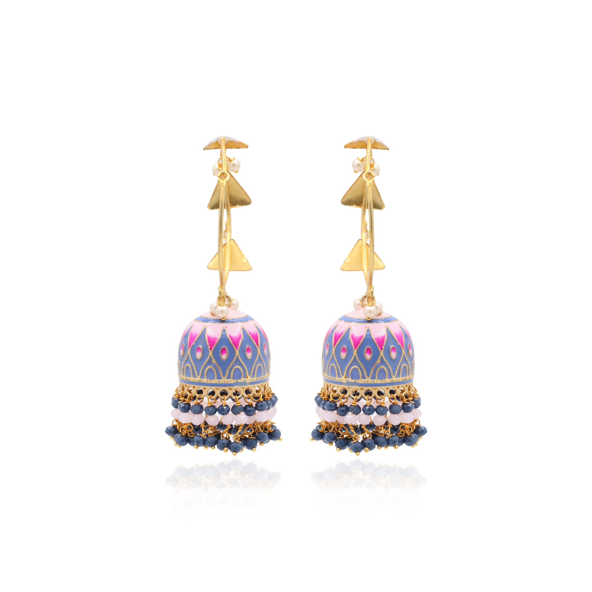 Blue Enamel Work Blue And Pink Stone Jumka Earring
