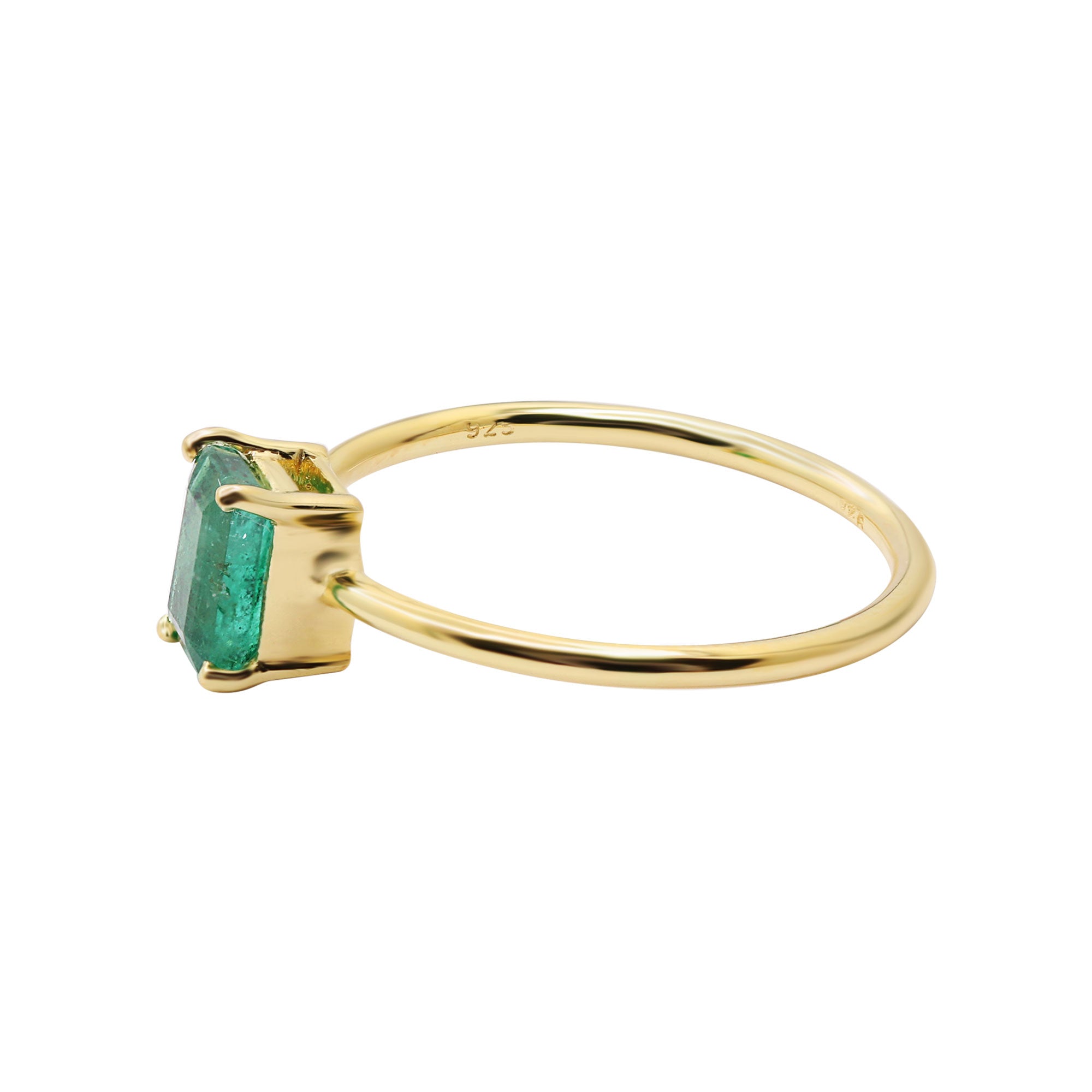 925 Sterling Silver Natural Emerald Gemstone Gold Plated Ring