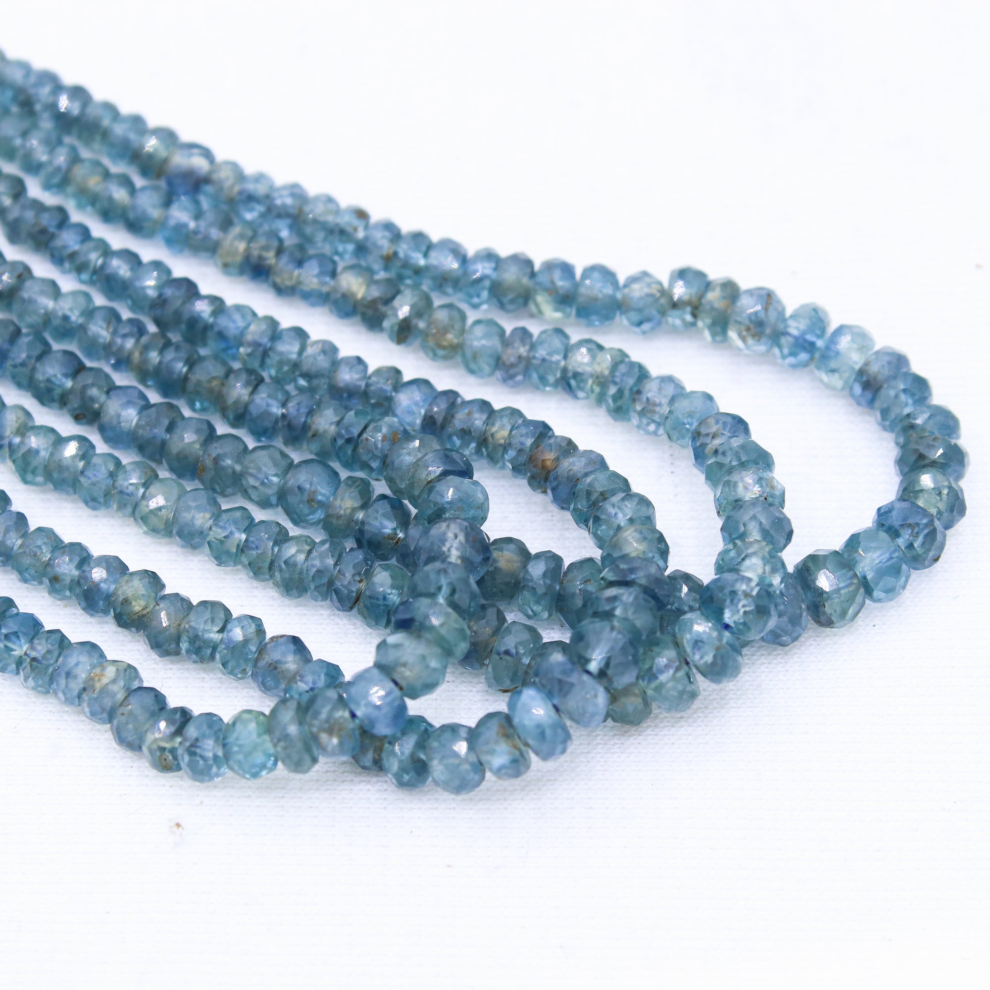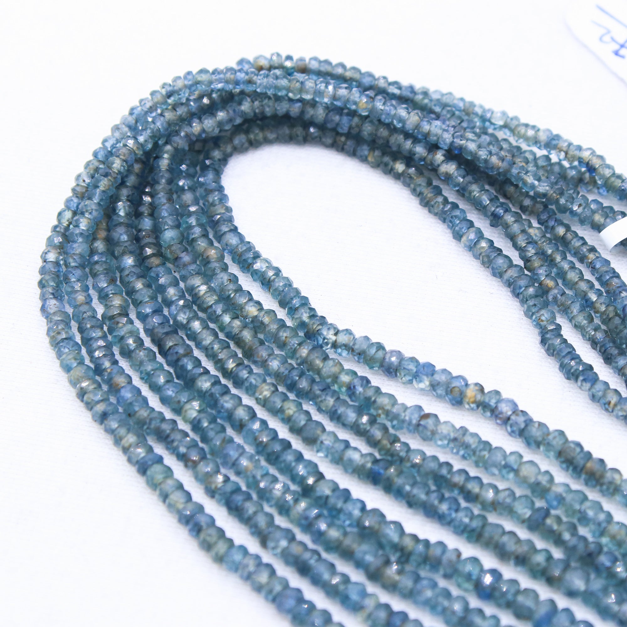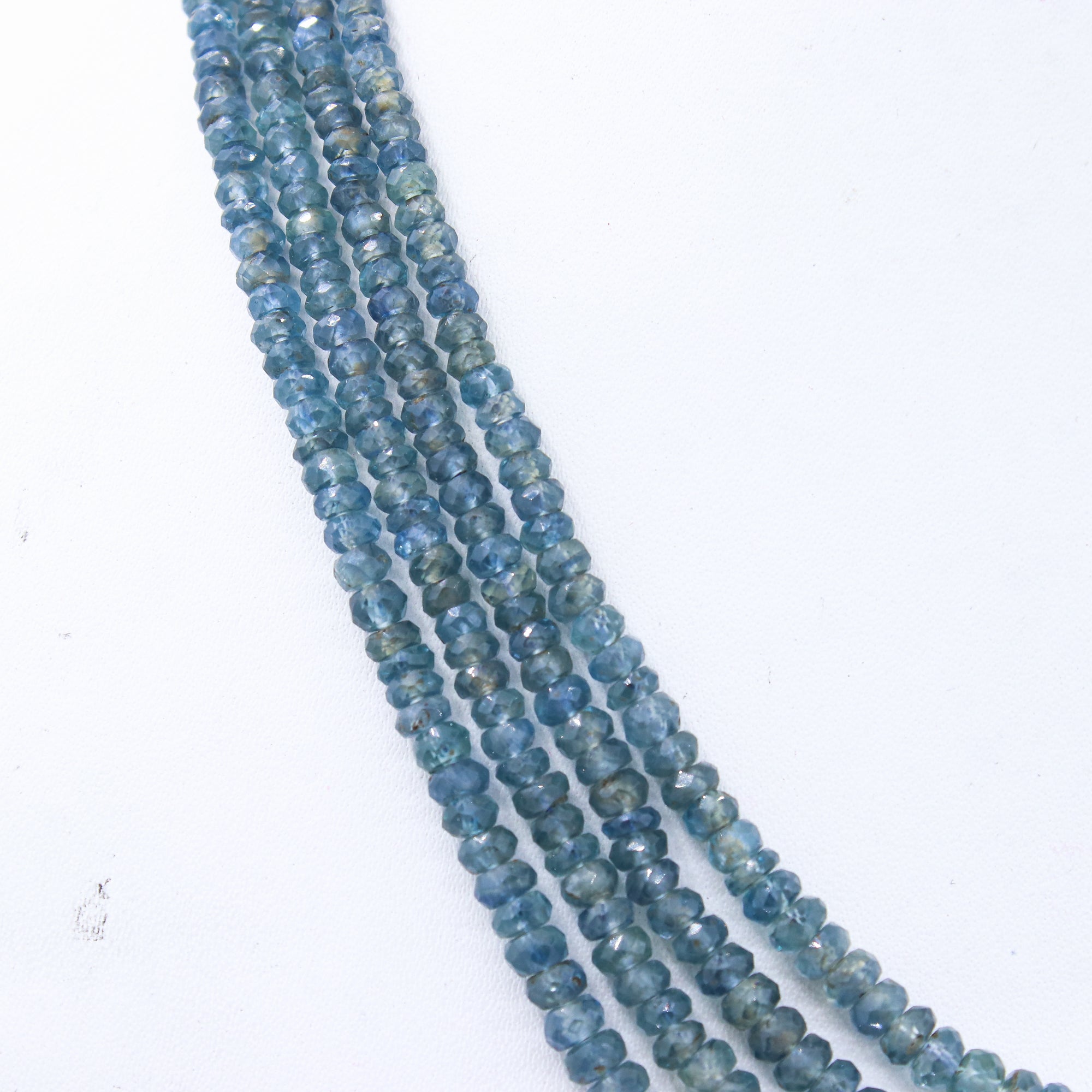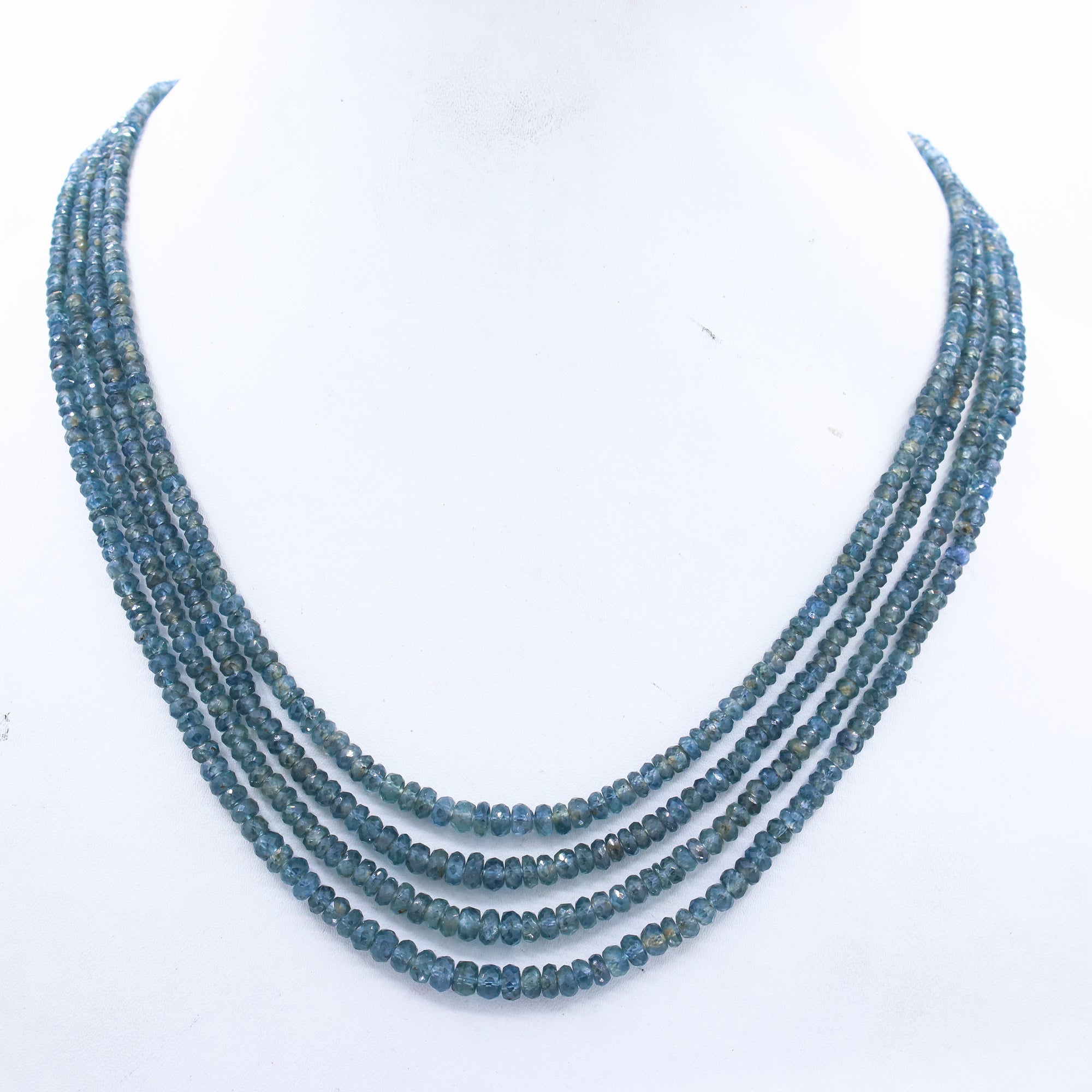 4 Layered Natural Blue Sapphire Roundel Faceted Cut Spiritual Healing Gemstone Beads Strand Necklace