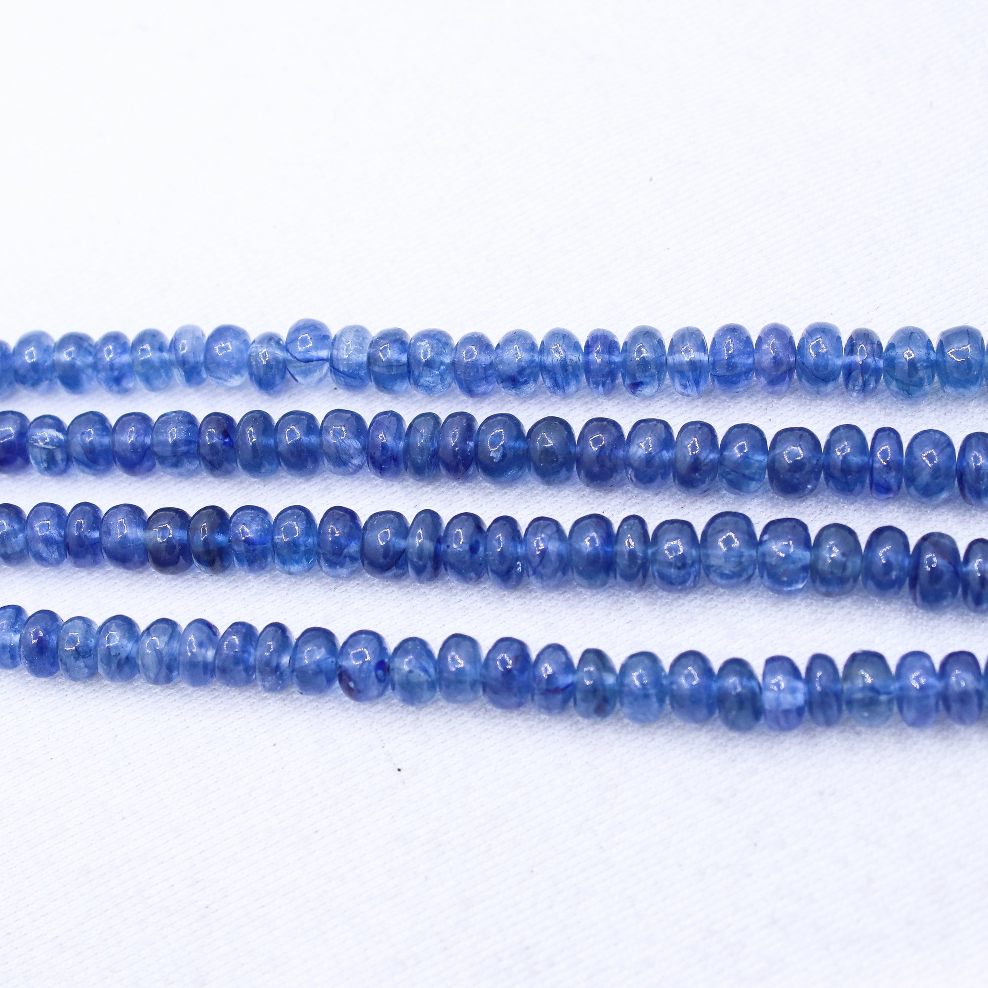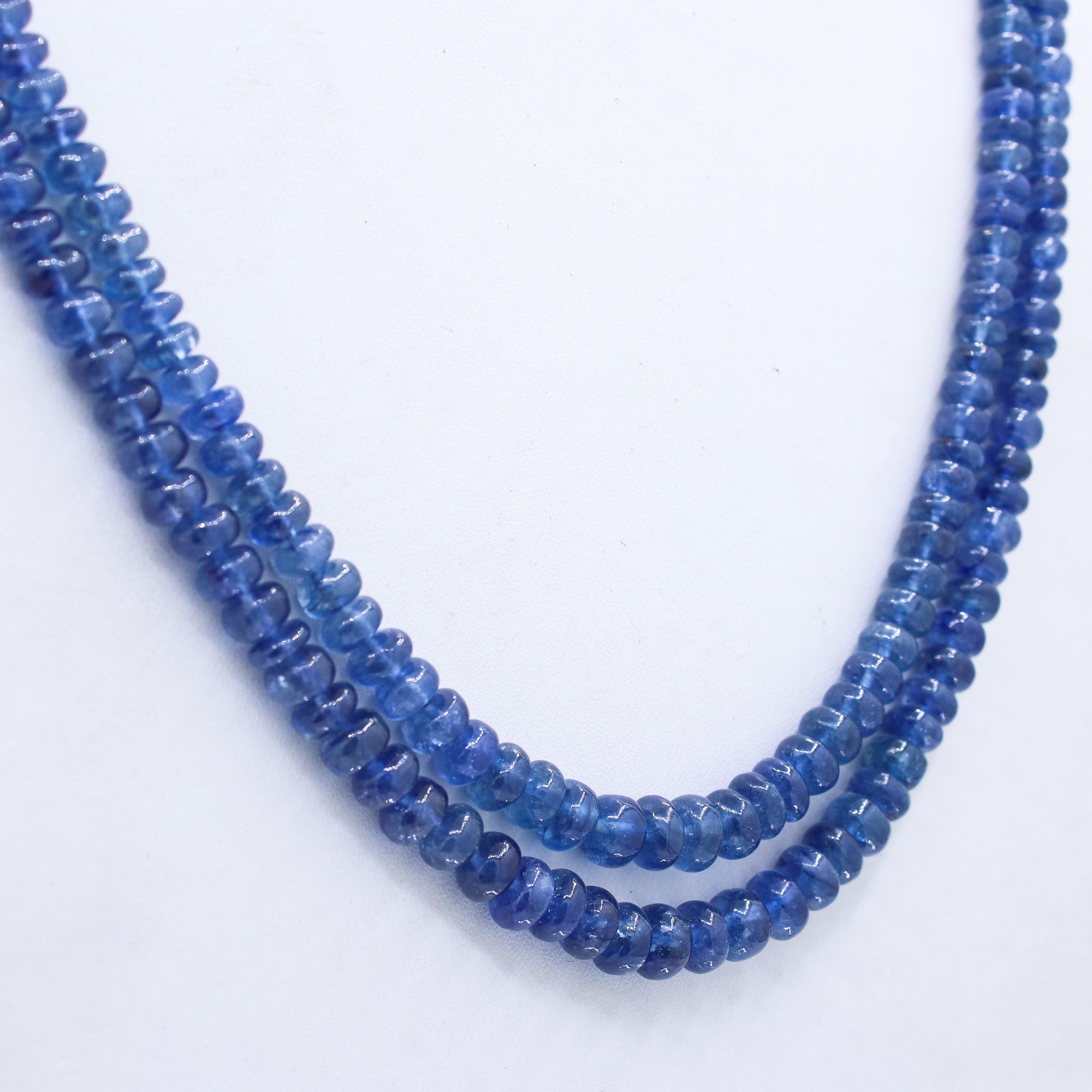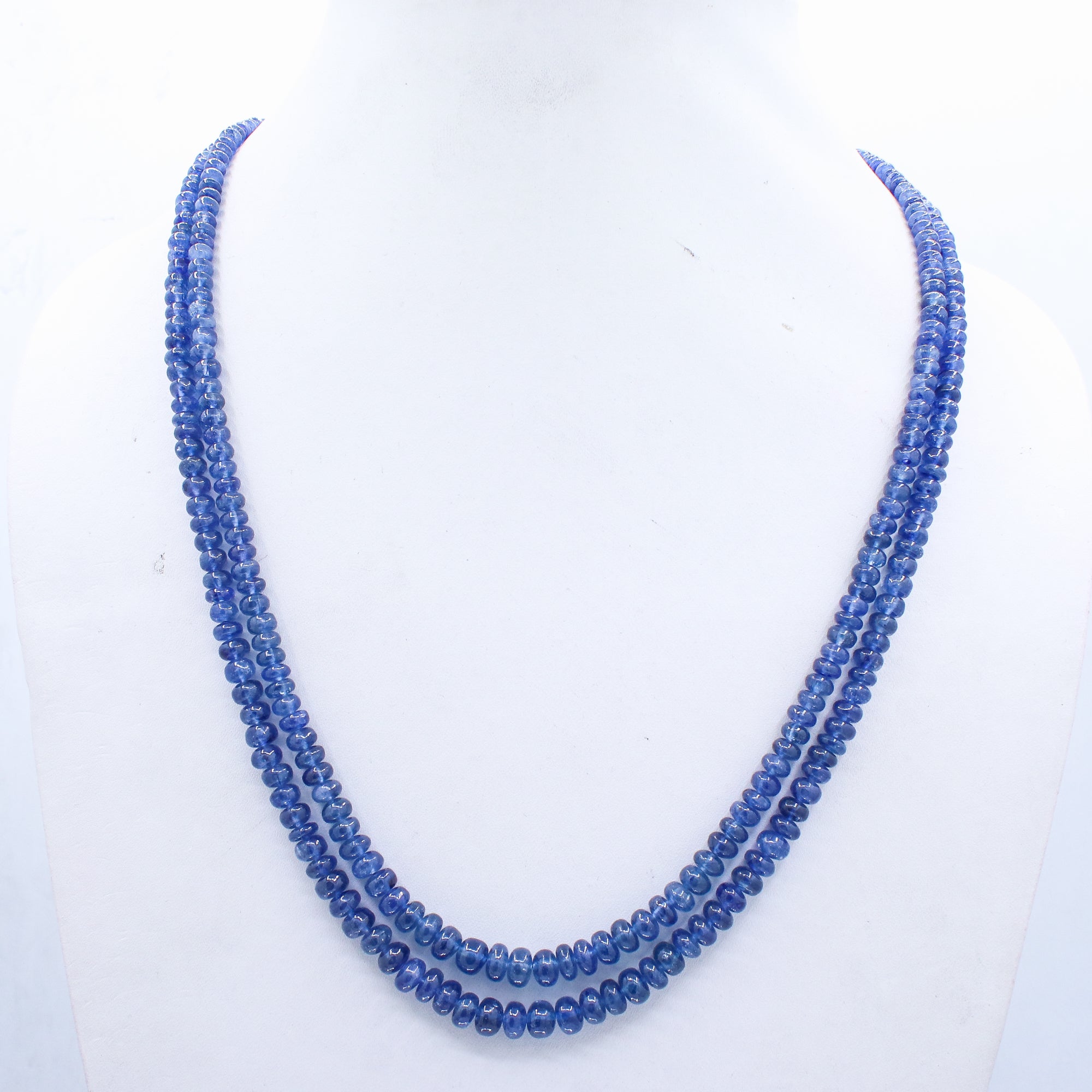 Certified 2 Line Natural Blue Sapphire Round Cabochon Cut Spiritual Healing Gemstone Beads Strand Necklace