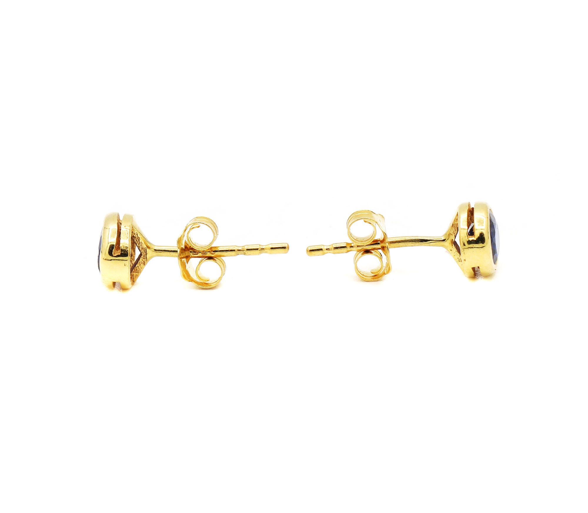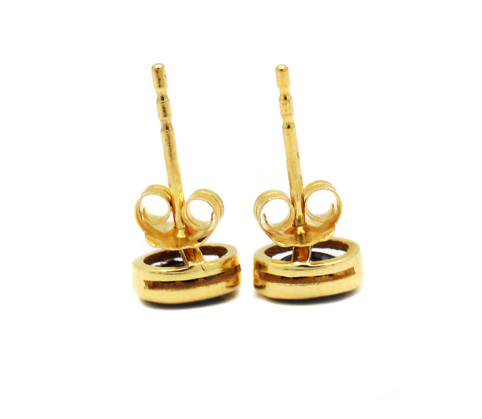 9K Yellow Gold Natural Blue Sapphire Oval Shaped Gemstone Gold Earring