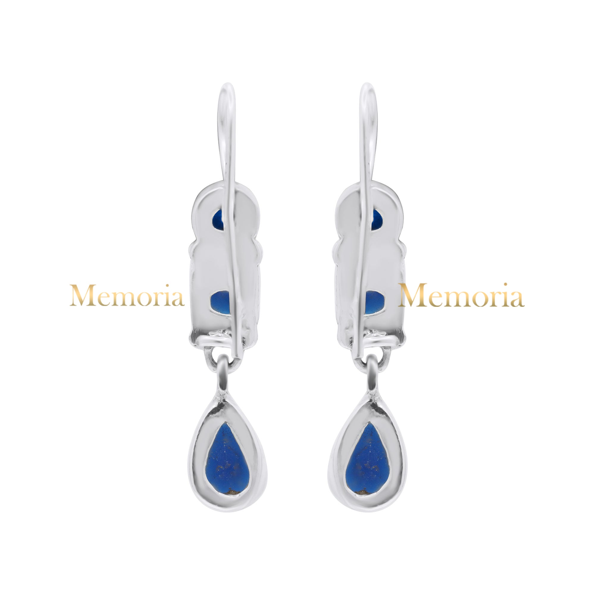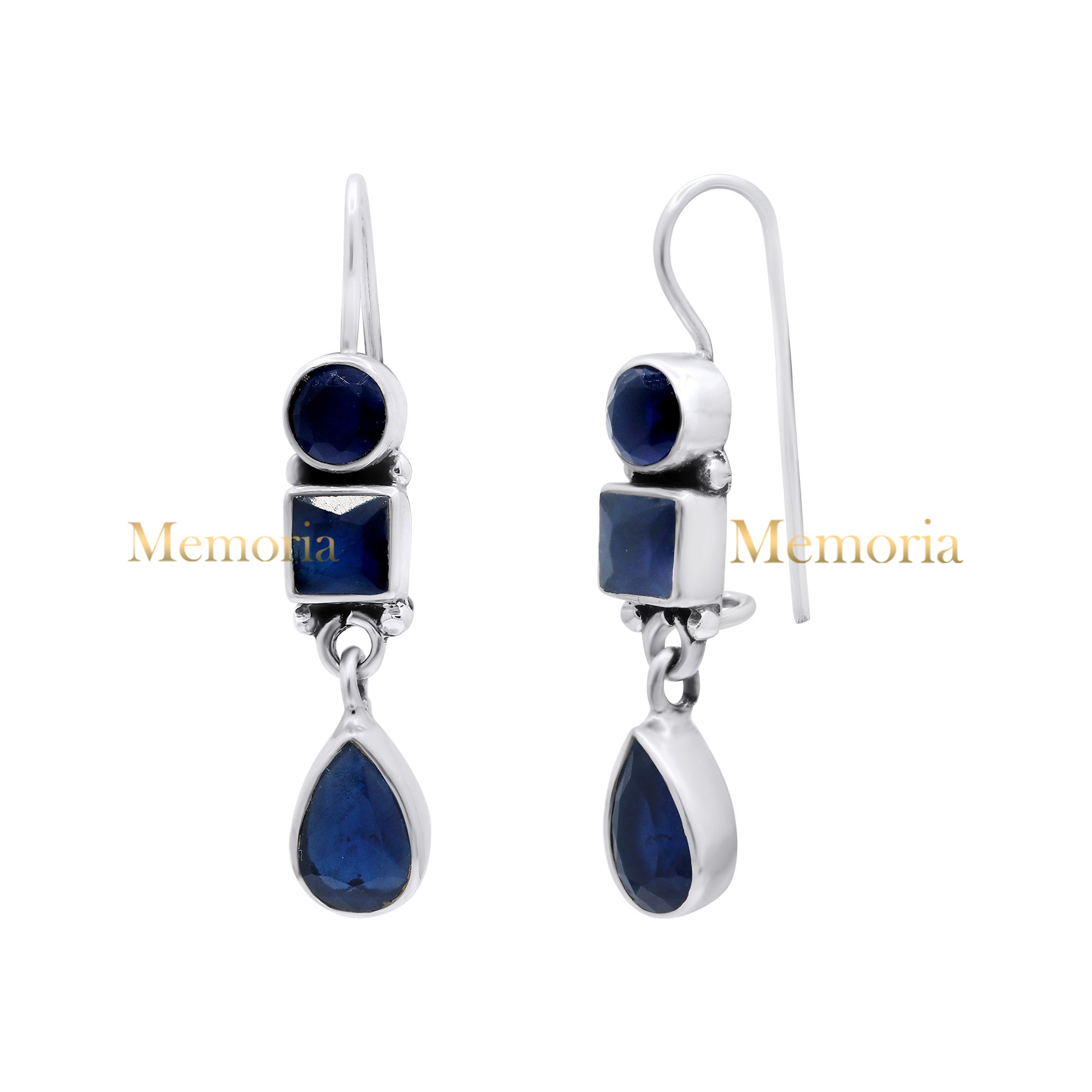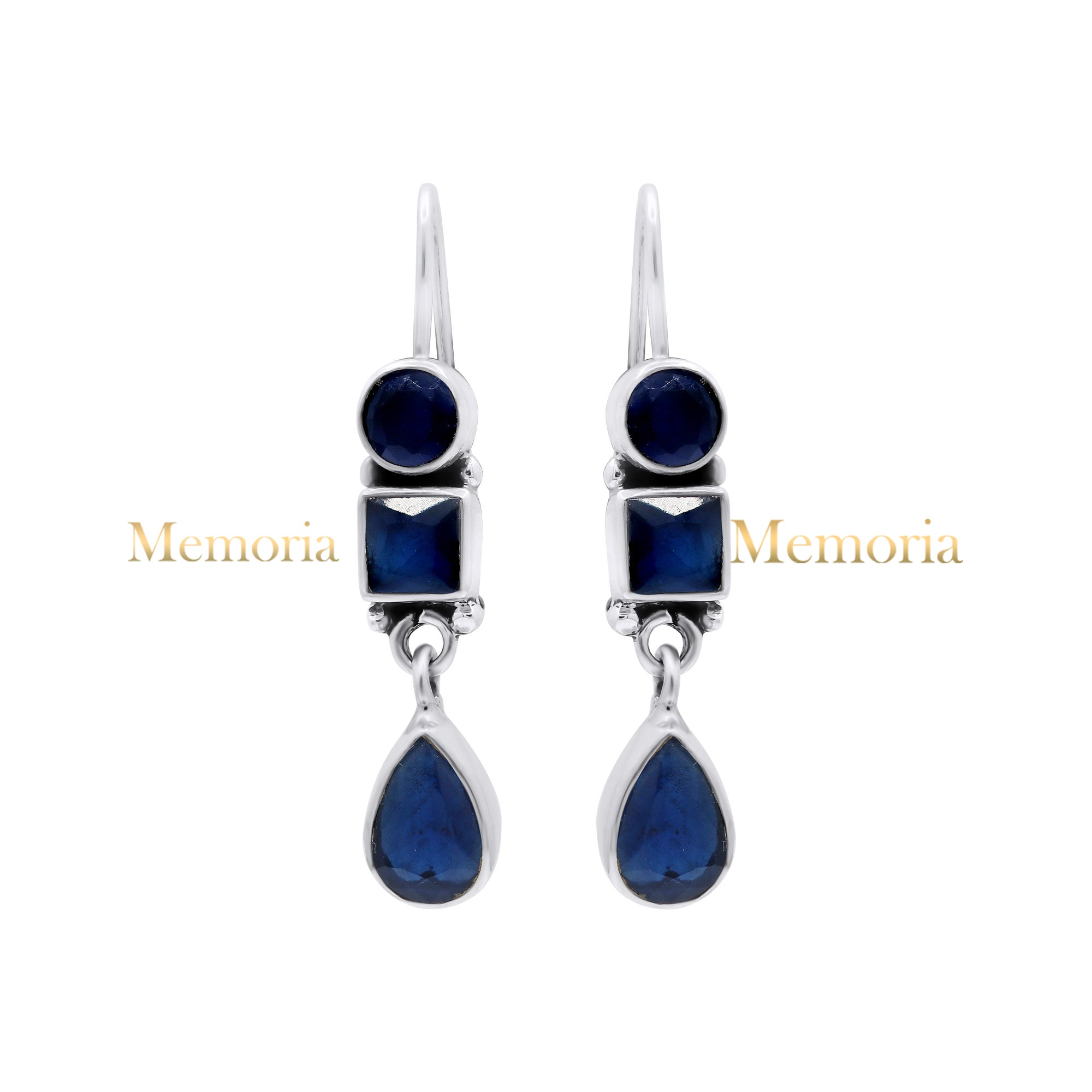Lab Created Blue Sapphire Gemstone 925 Sterling Silver Drop Earring