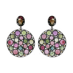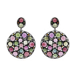 Natural Multi Sapphire Gemstone and Diamond 925 Sterling Silver Gold Plated Drop Earring