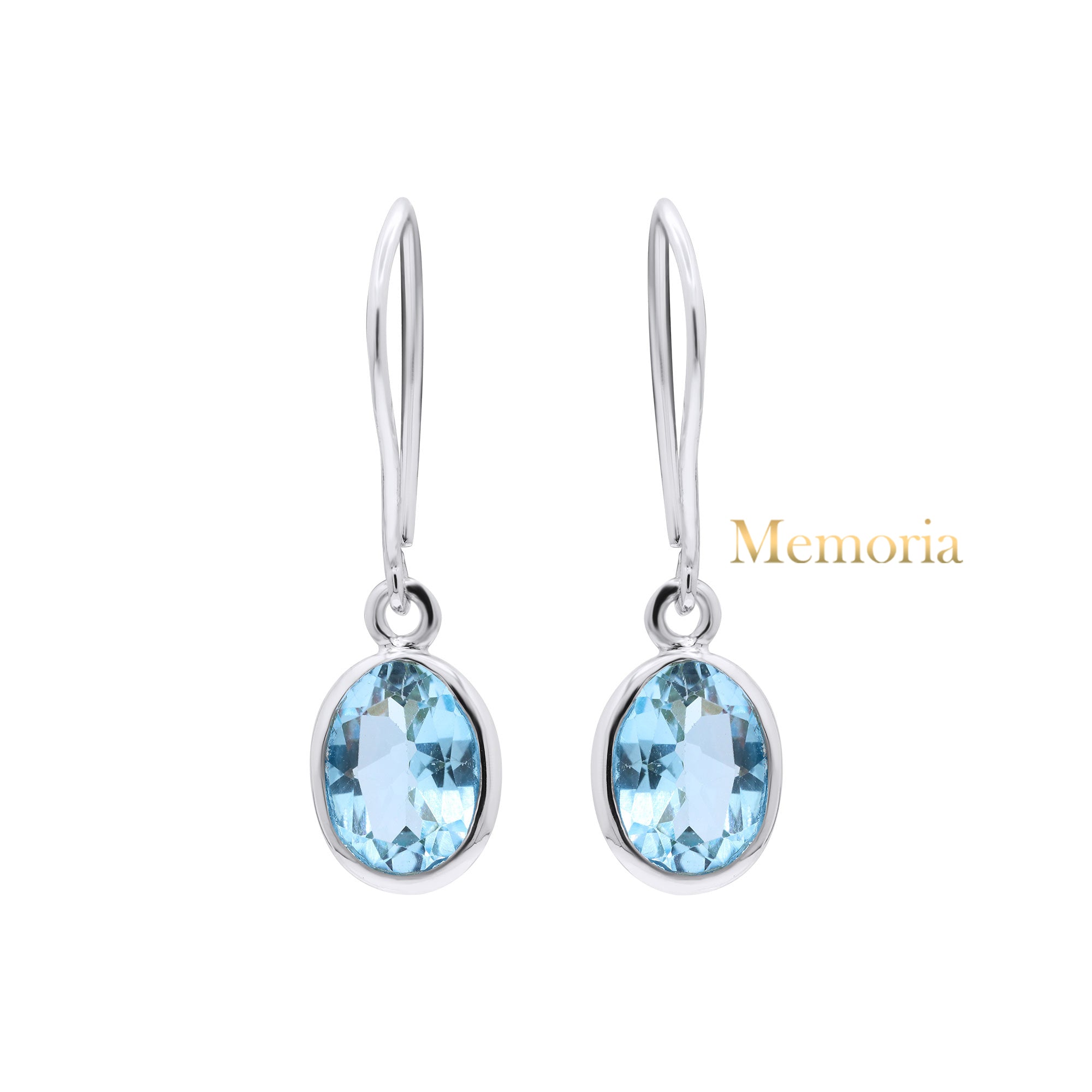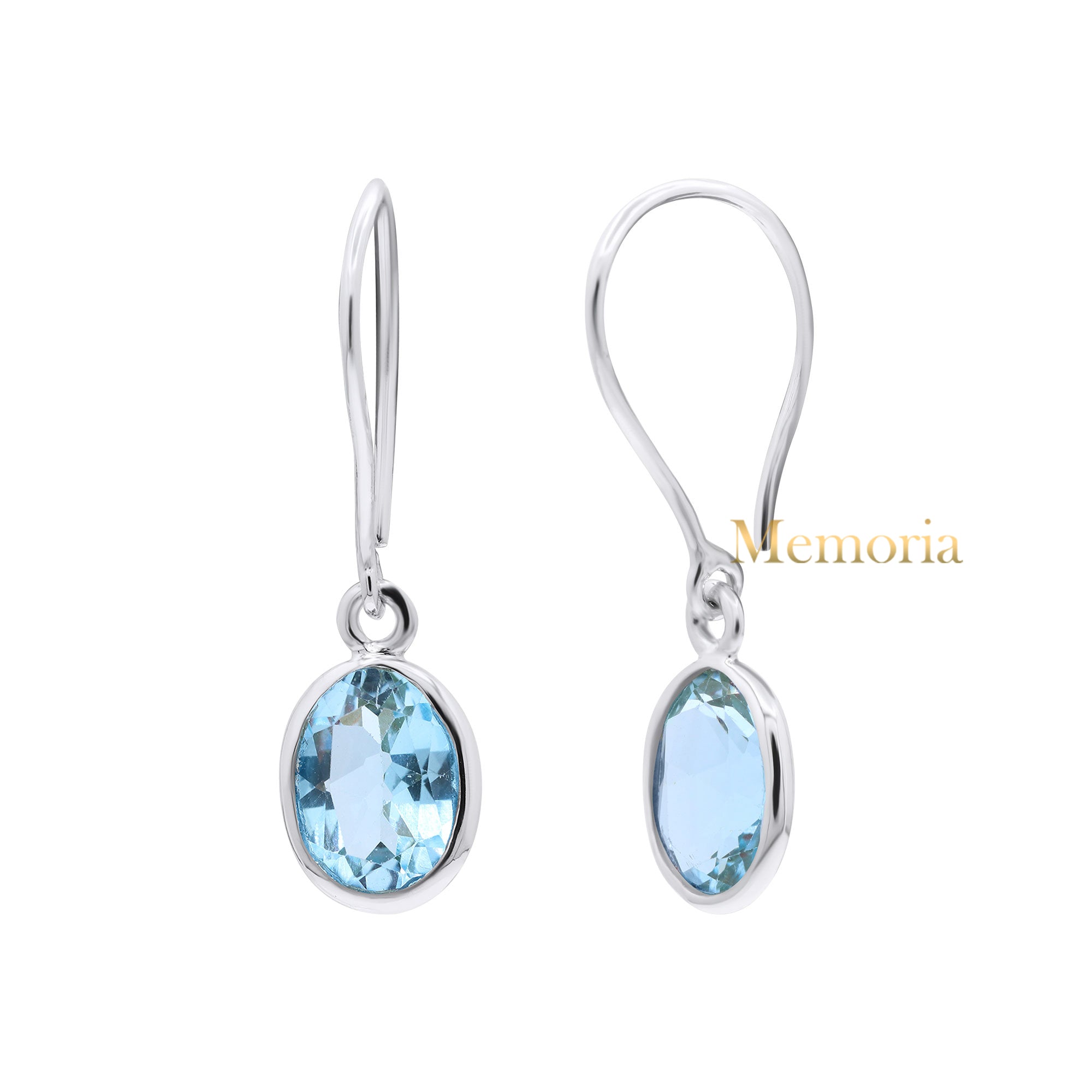 Natural Blue Topaz Oval Shaped Gemstone 925 Sterling Silver Drop Earring