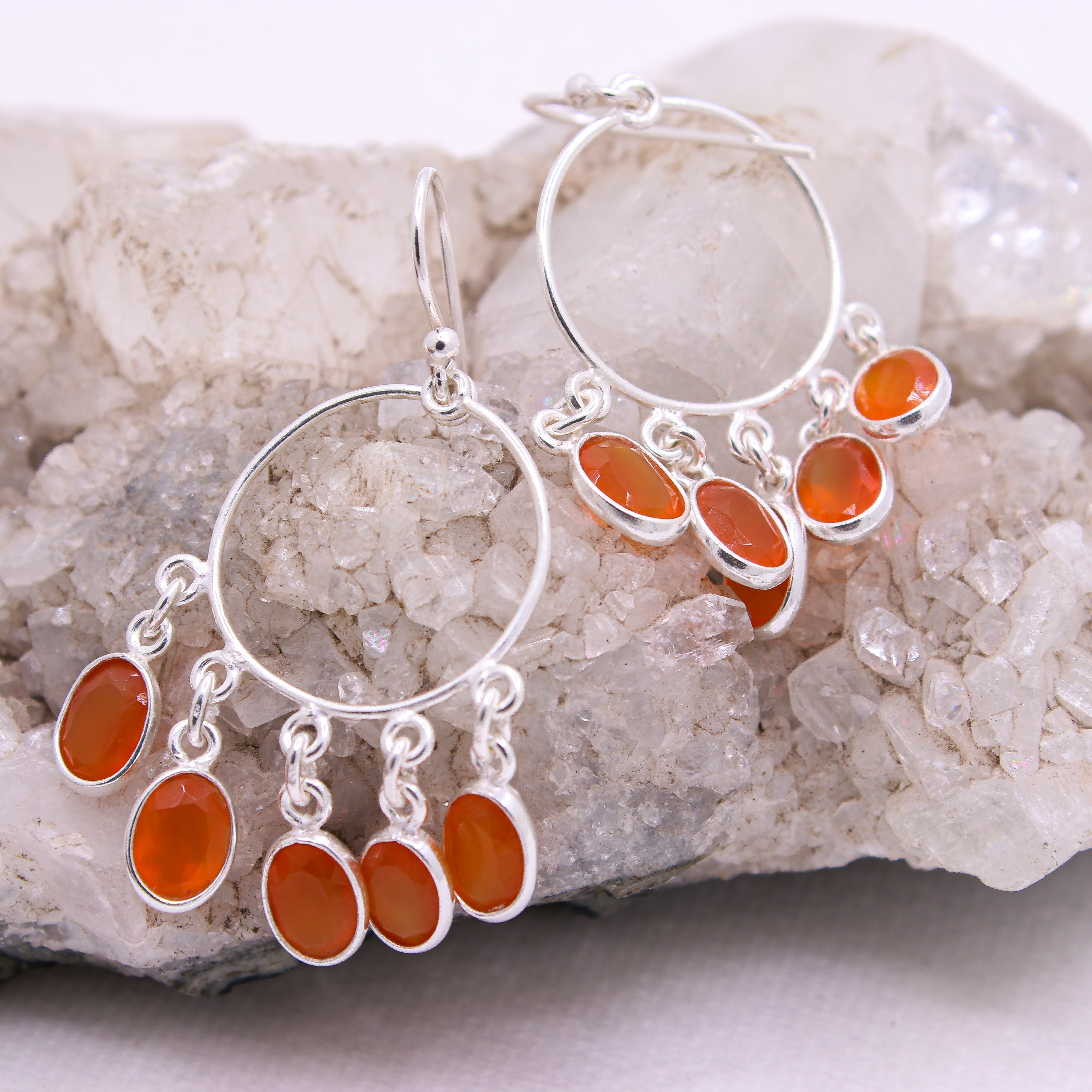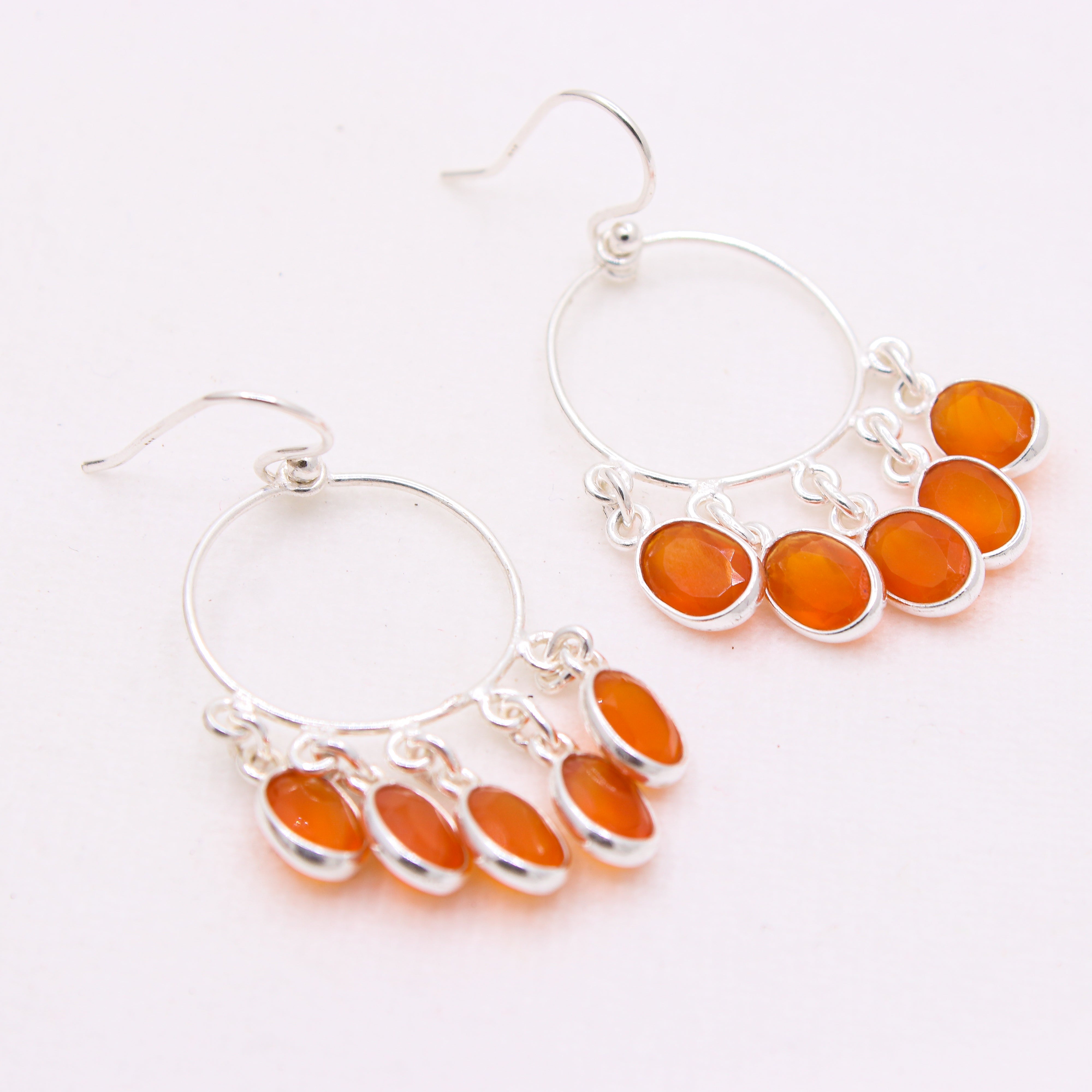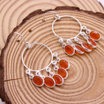 Natural Carnelian Chandelier Hoop Earrings in 925 Sterling Silver Handmade Orange Gemstone Dangle Earrings