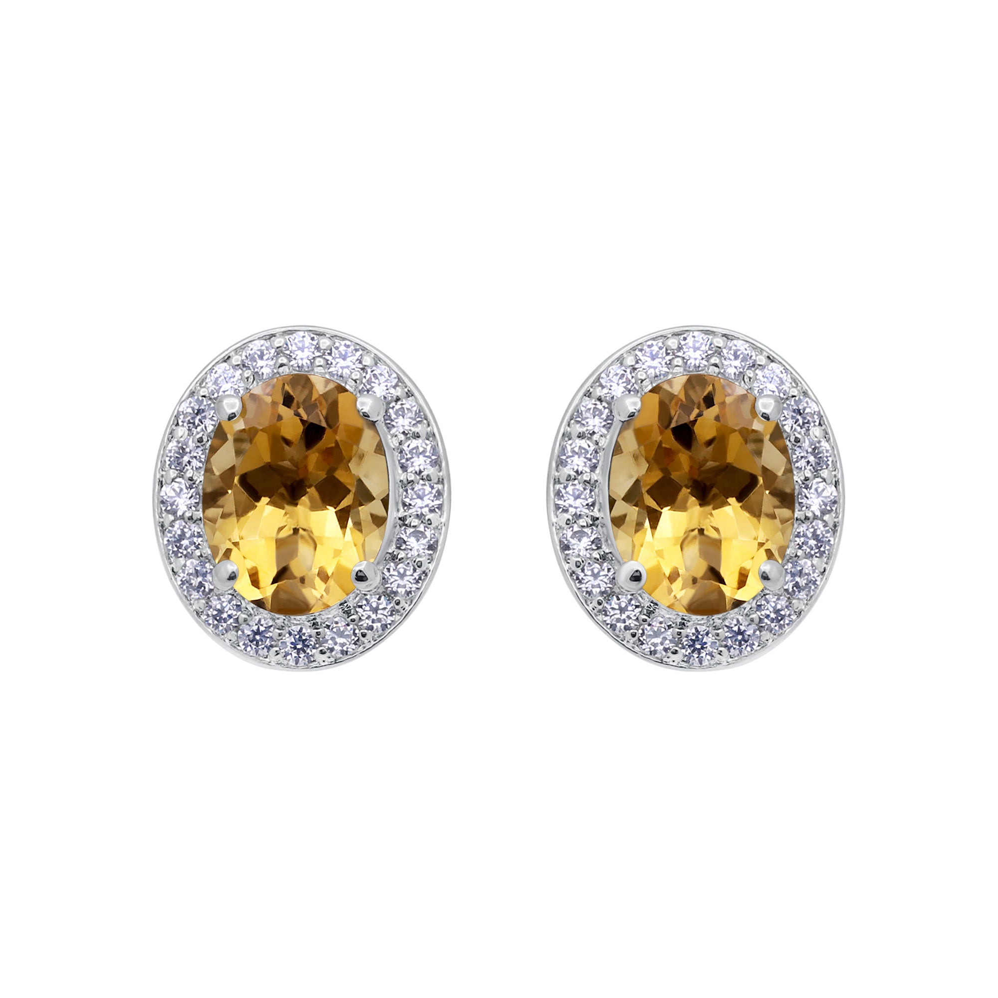 Add a touch of timeless elegance to your jewelry collection with these stunning Natural Citrine and CZ Silver Stud Earrings. Featuring oval citrine gemstones, these earrings are surrounded by a sparkling halo of brilliant cubic zirconia stones, creating a luxurious and eye-catching design.