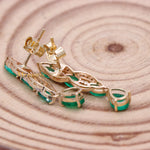 Natural Emerald Gemstone & Diamond 14k Yellow Gold Dangle Earring