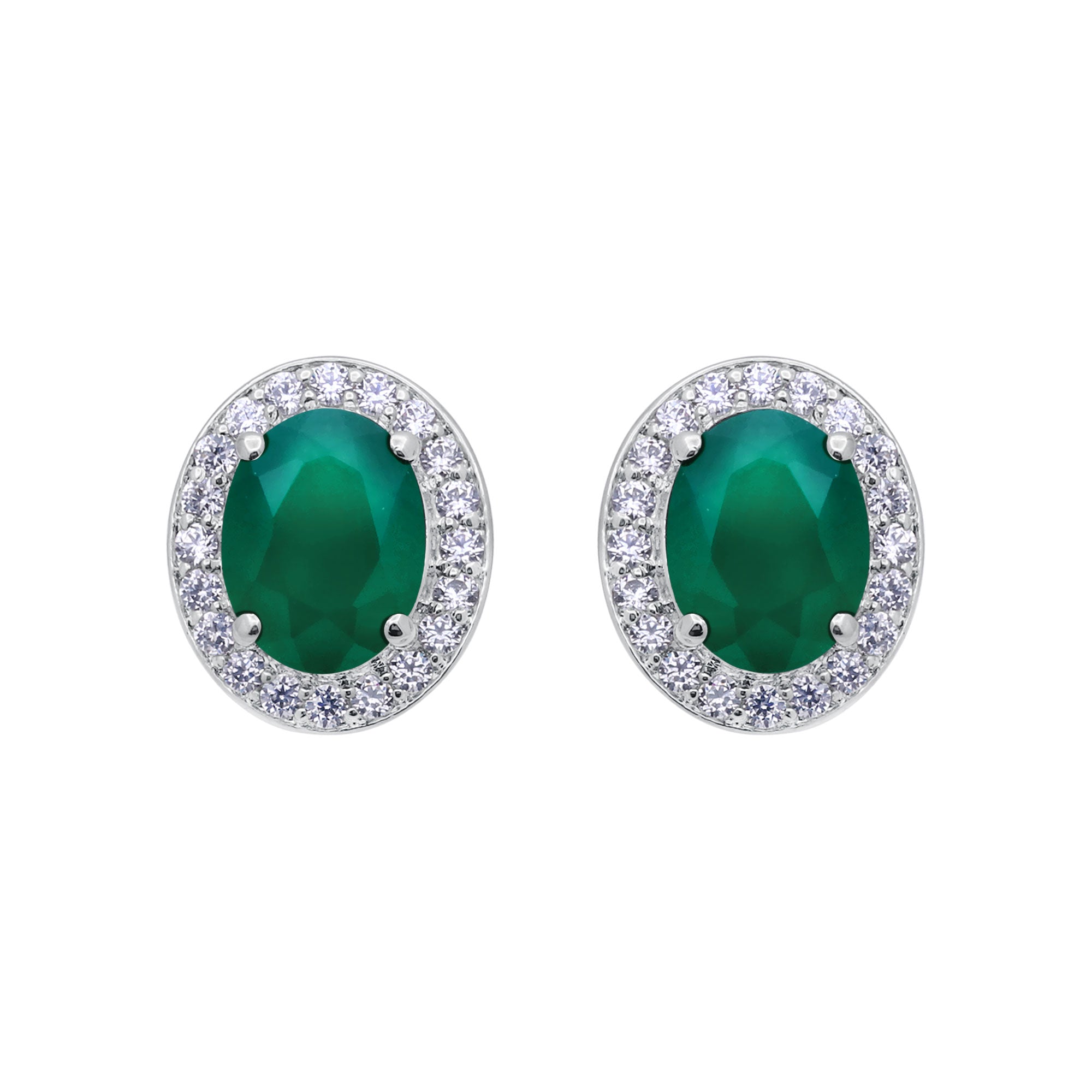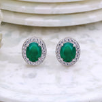 Add a touch of timeless elegance to your jewelry collection with these stunning Natural Green Onyx and CZ Silver Stud Earrings. Featuring oval onyx gemstones, these earrings are surrounded by a sparkling halo of brilliant cubic zirconia stones, creating a luxurious and eye-catching design.