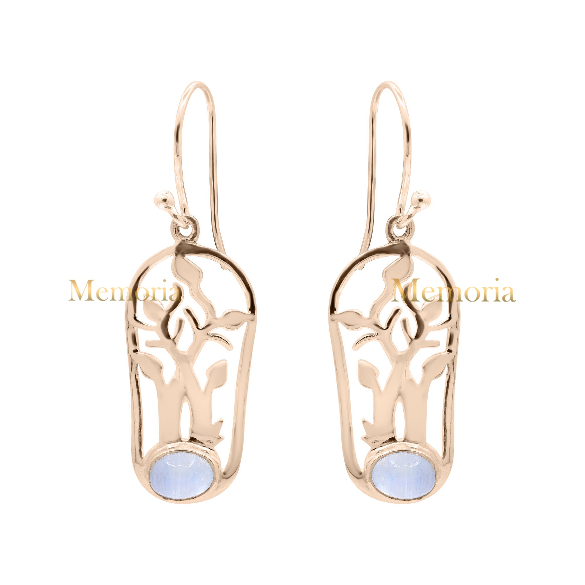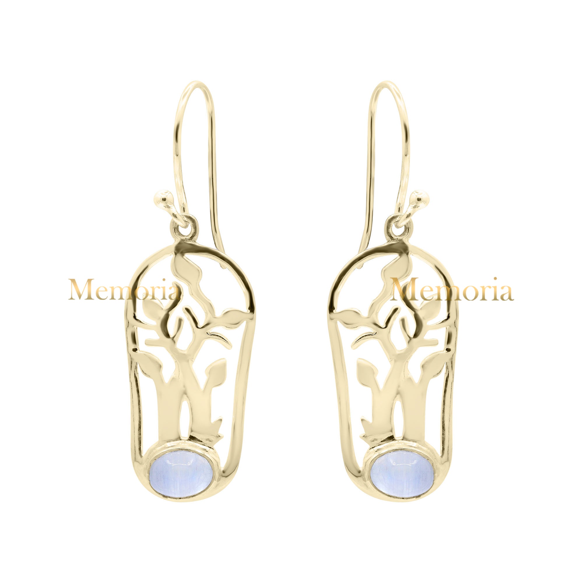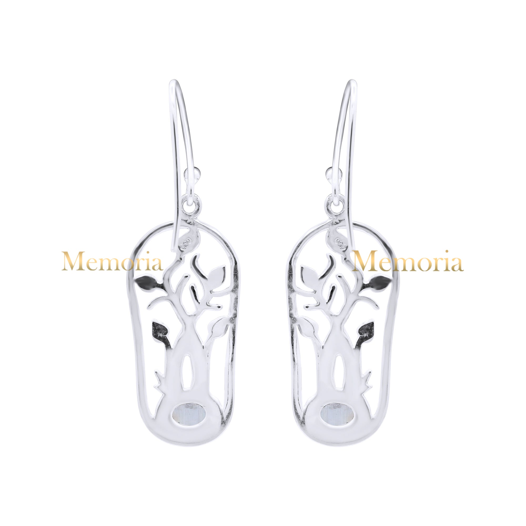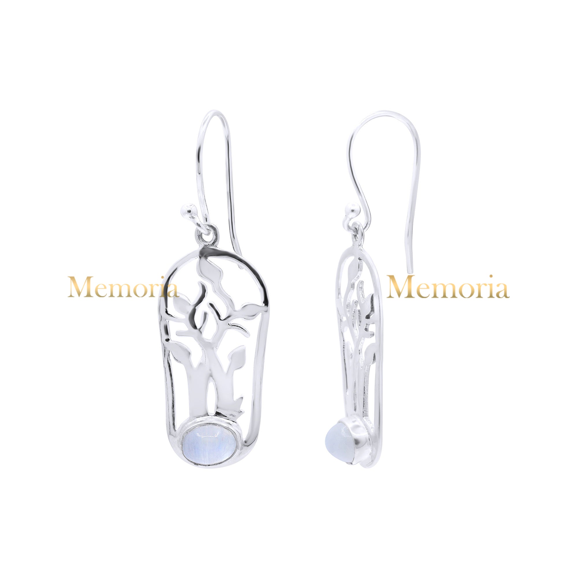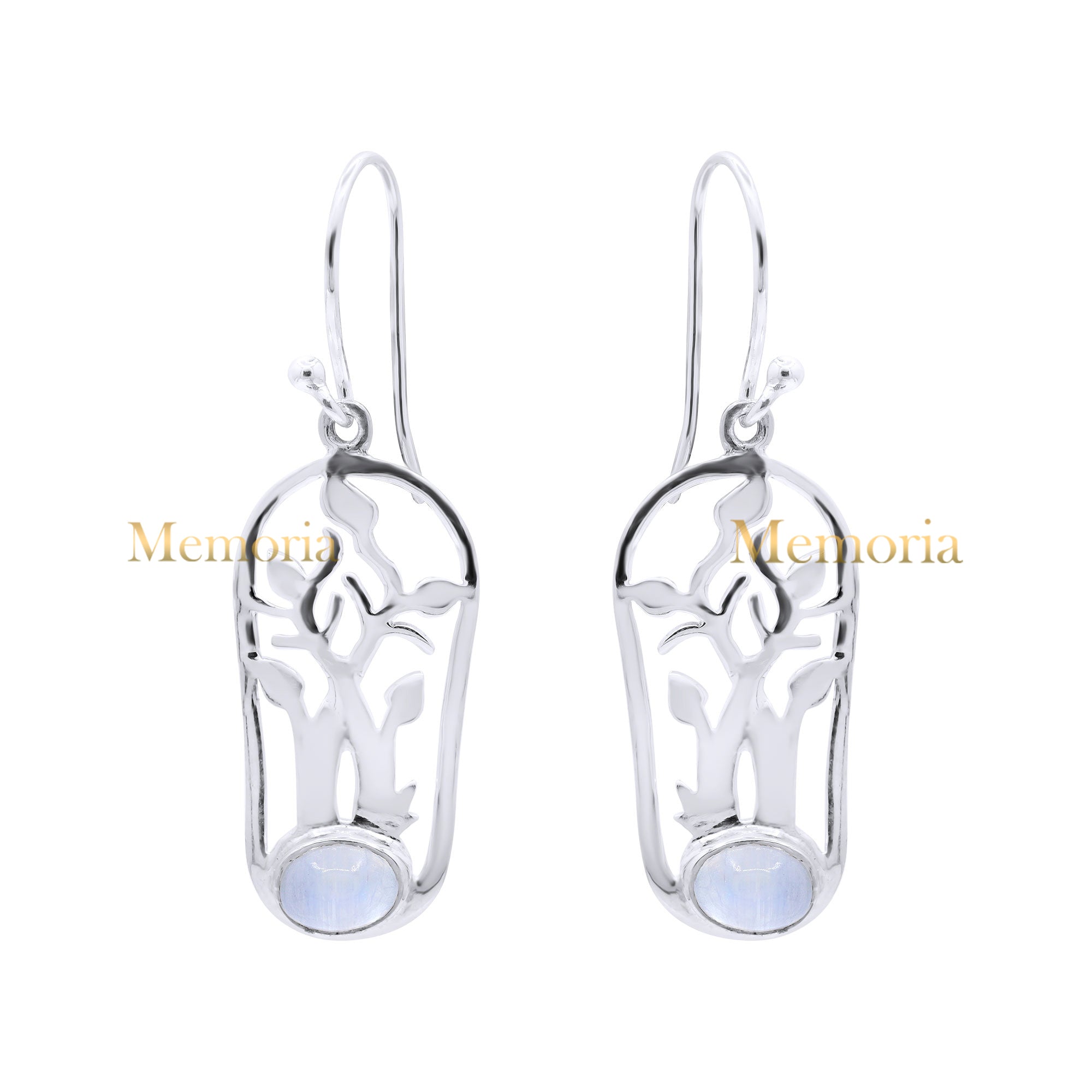 Natural Oval Cut Moonstone Gemstone 925 Sterling Silver Drop Earring