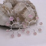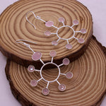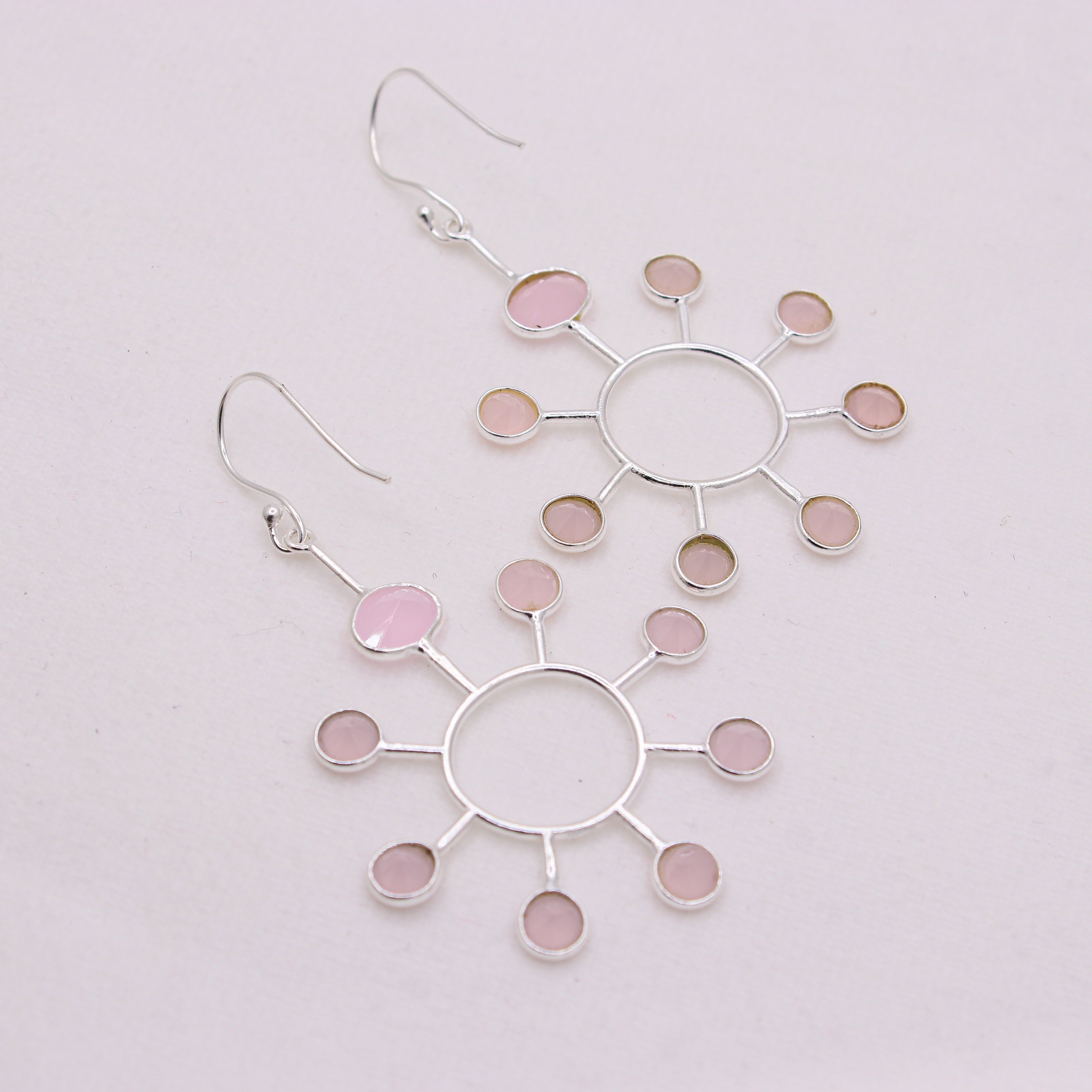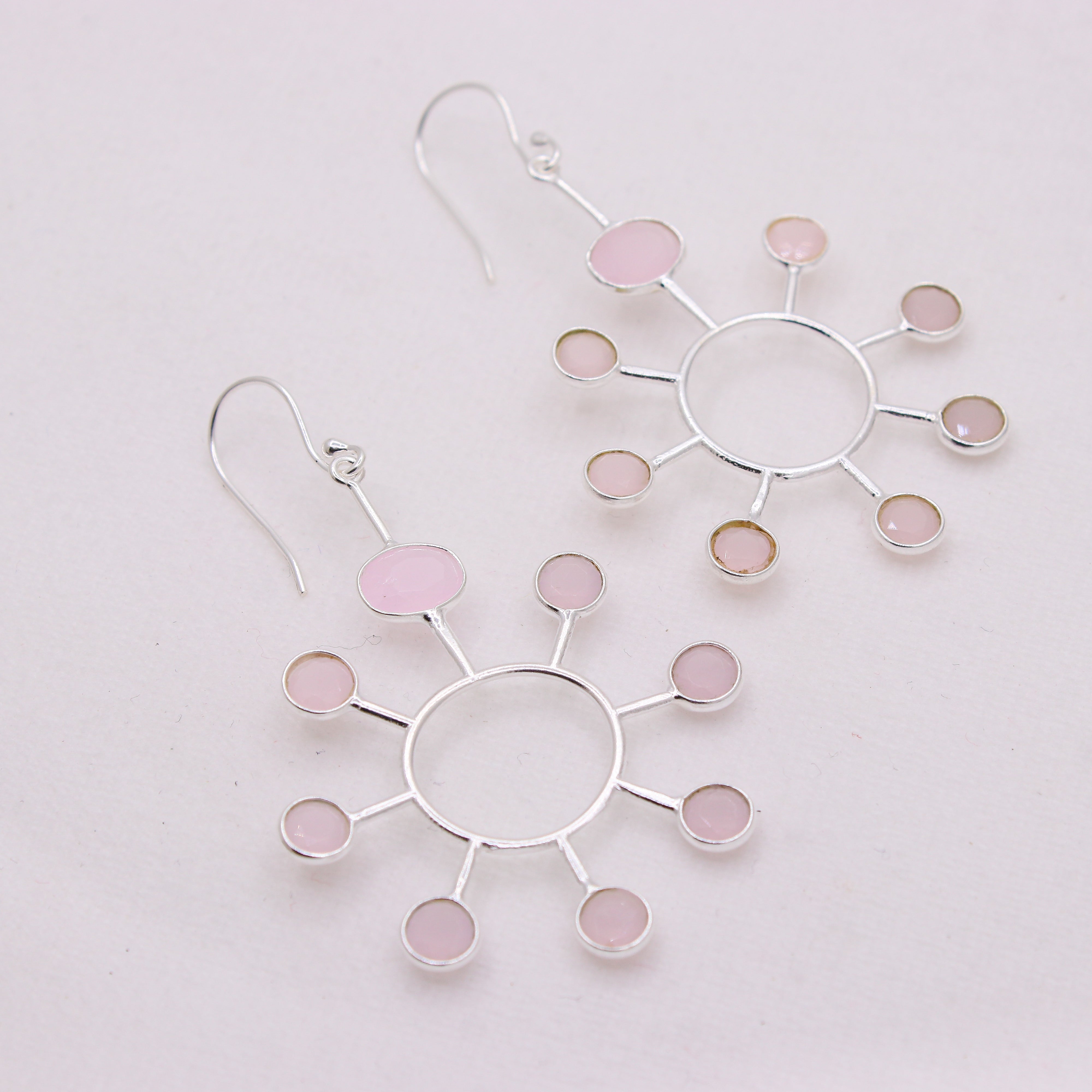 Natural Rose Quartz Sunburst Earrings in 925 Sterling Silver Handmade Pink Gemstone Dangle Earrings
