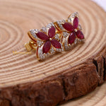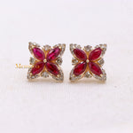 Natural Ruby Gemstone With Diamond 14k Yellow Gold Clover Stud Earring