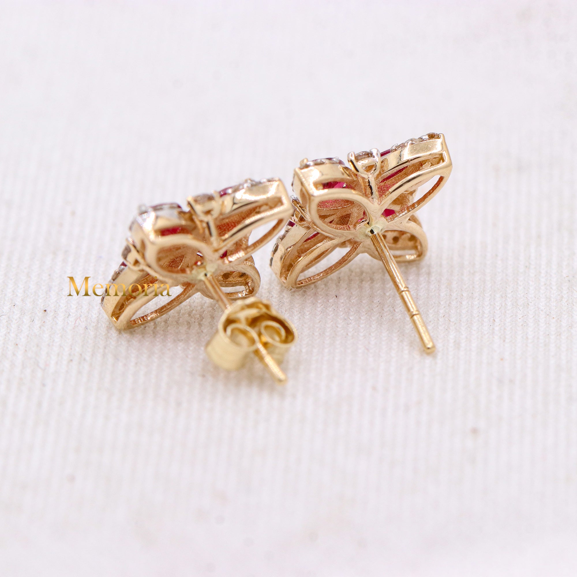 Buy Best Quality Certified Designer Natural Ruby Marquise Shaped Faceted Cut Spiritual Chakra Healing Gemstone With Diamond Stud Earring In 14k Yellow Gold