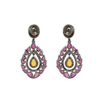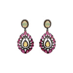Natural Ruby, Opal Gemstone and Diamond 925 Sterling Silver Gold Plated Earrings
