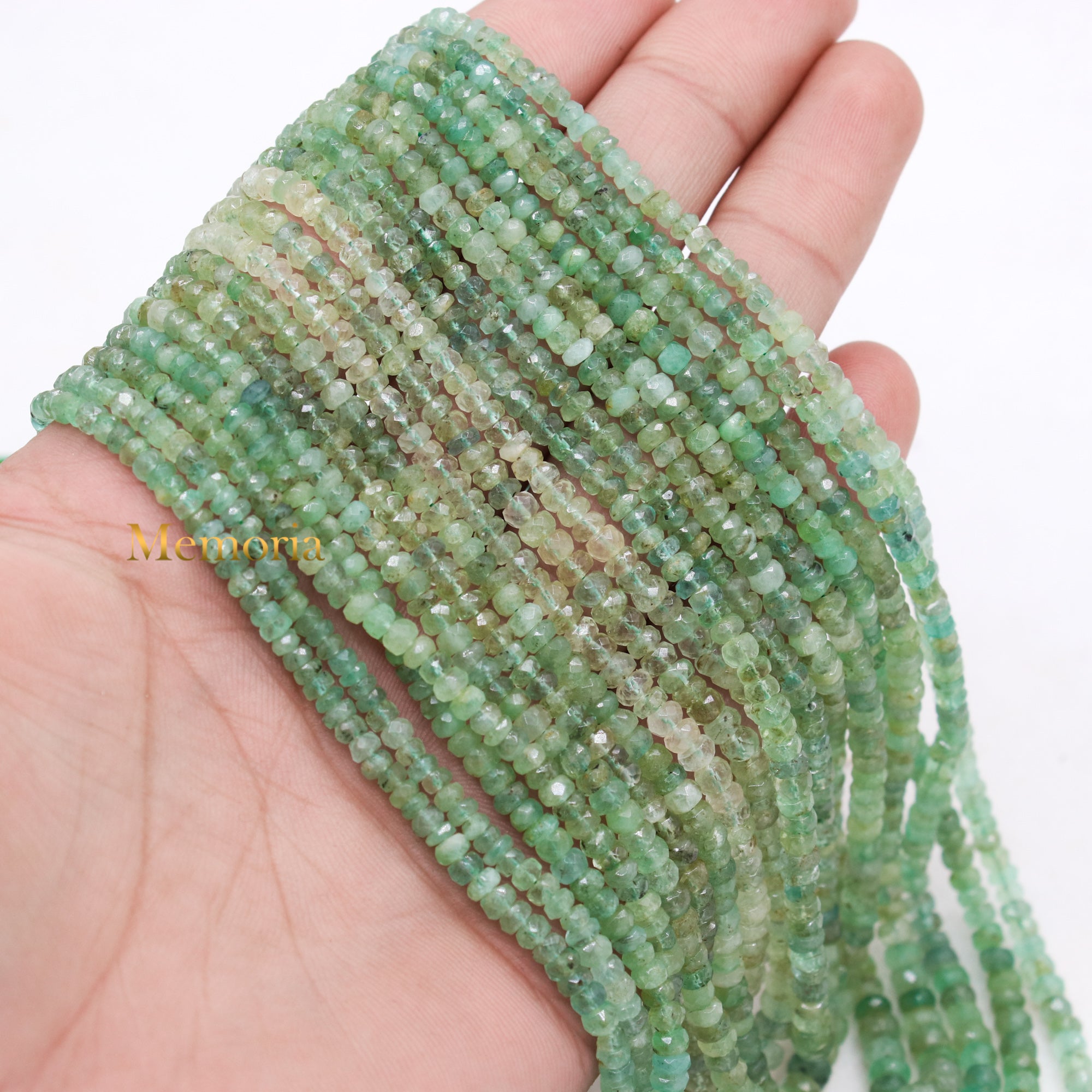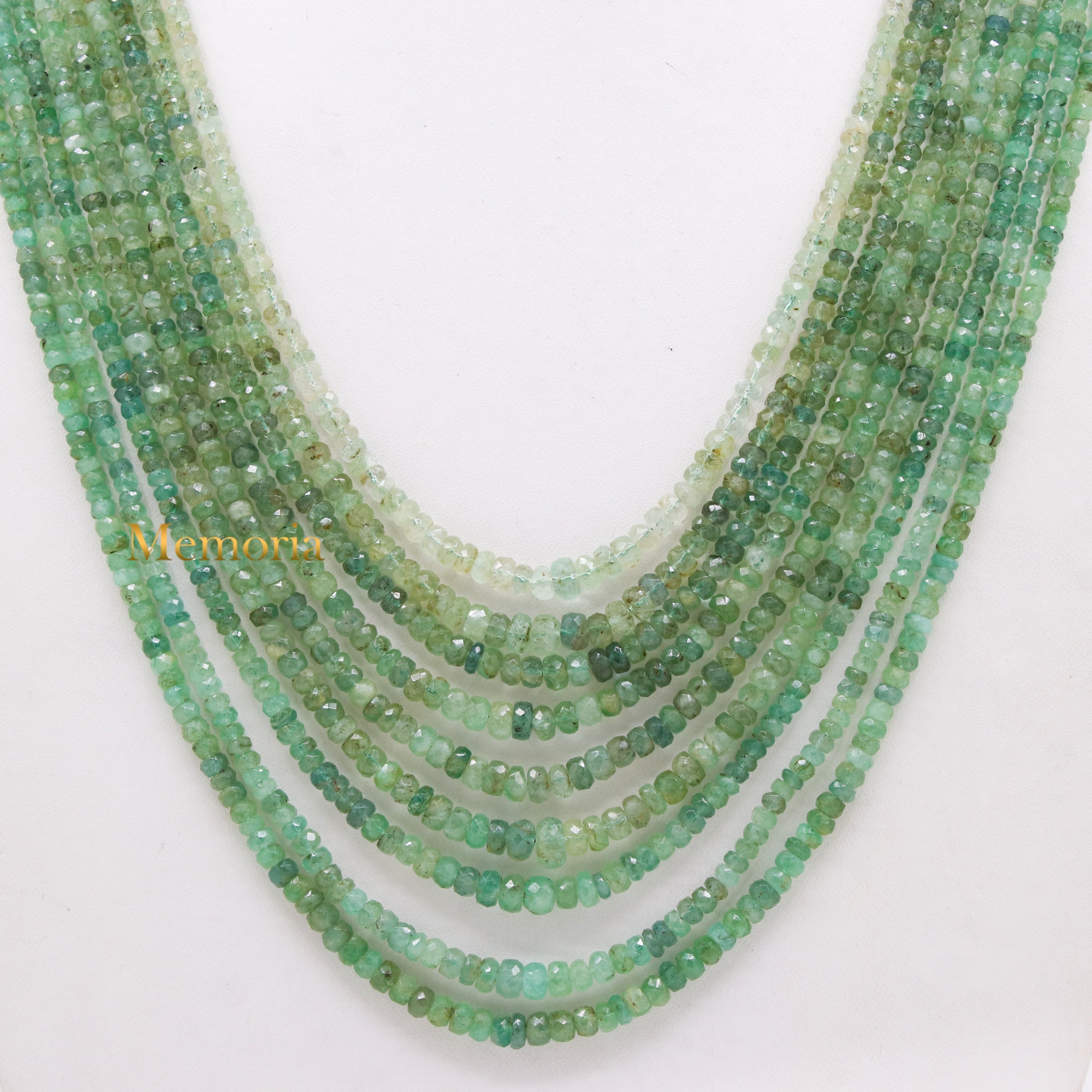 Buy 9 Line Natural Emerald Round Faceted Spiritual Healing Gemstone Beads Strand Thread Necklace