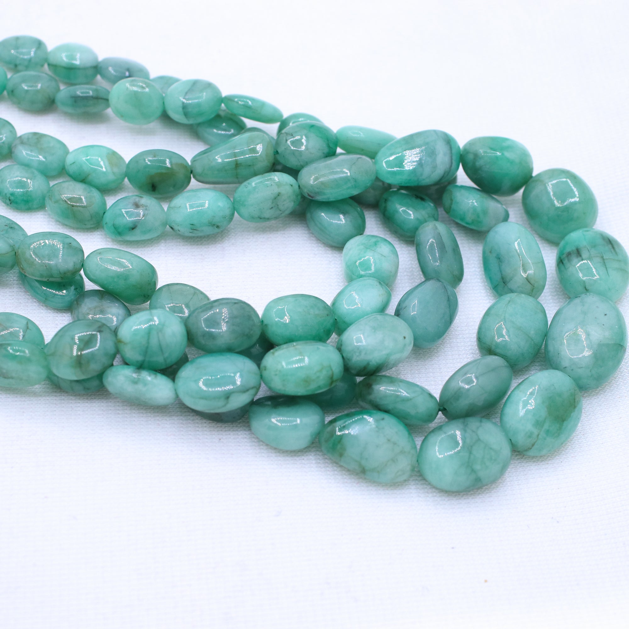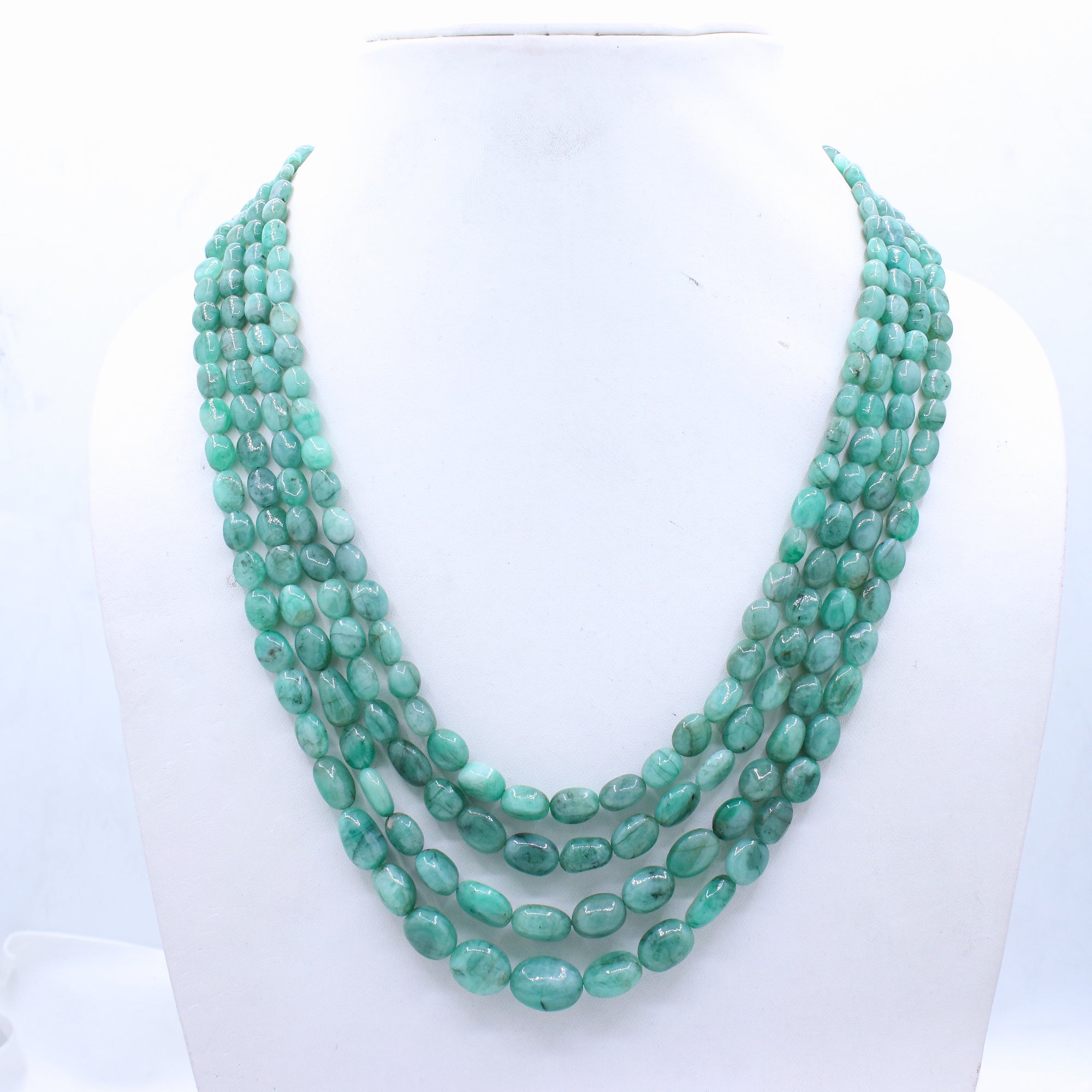Buy 4 Line Certified Handcrafted Natural Emerald Oval Shaped Cabochon Cut Beads Thread Necklace For Womens