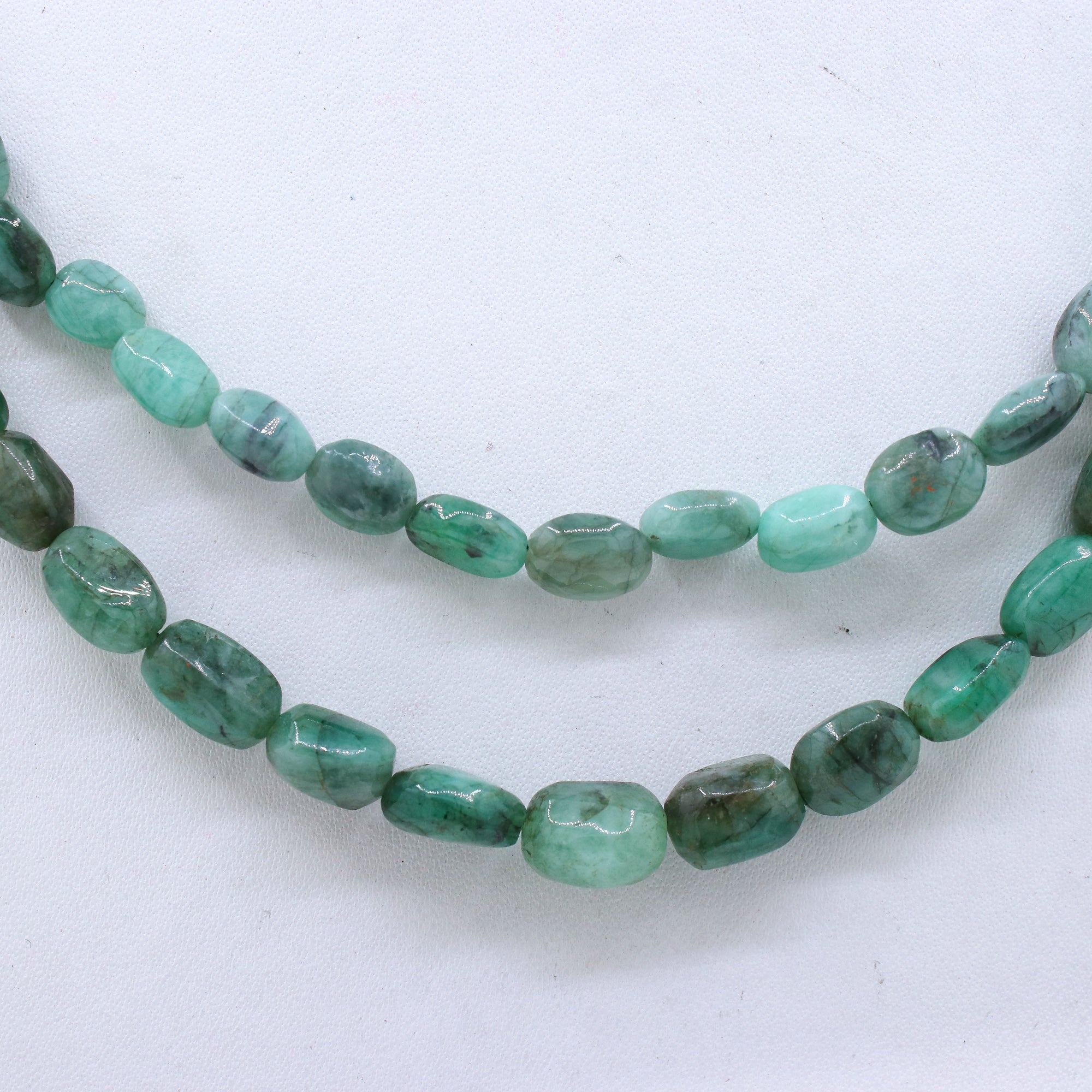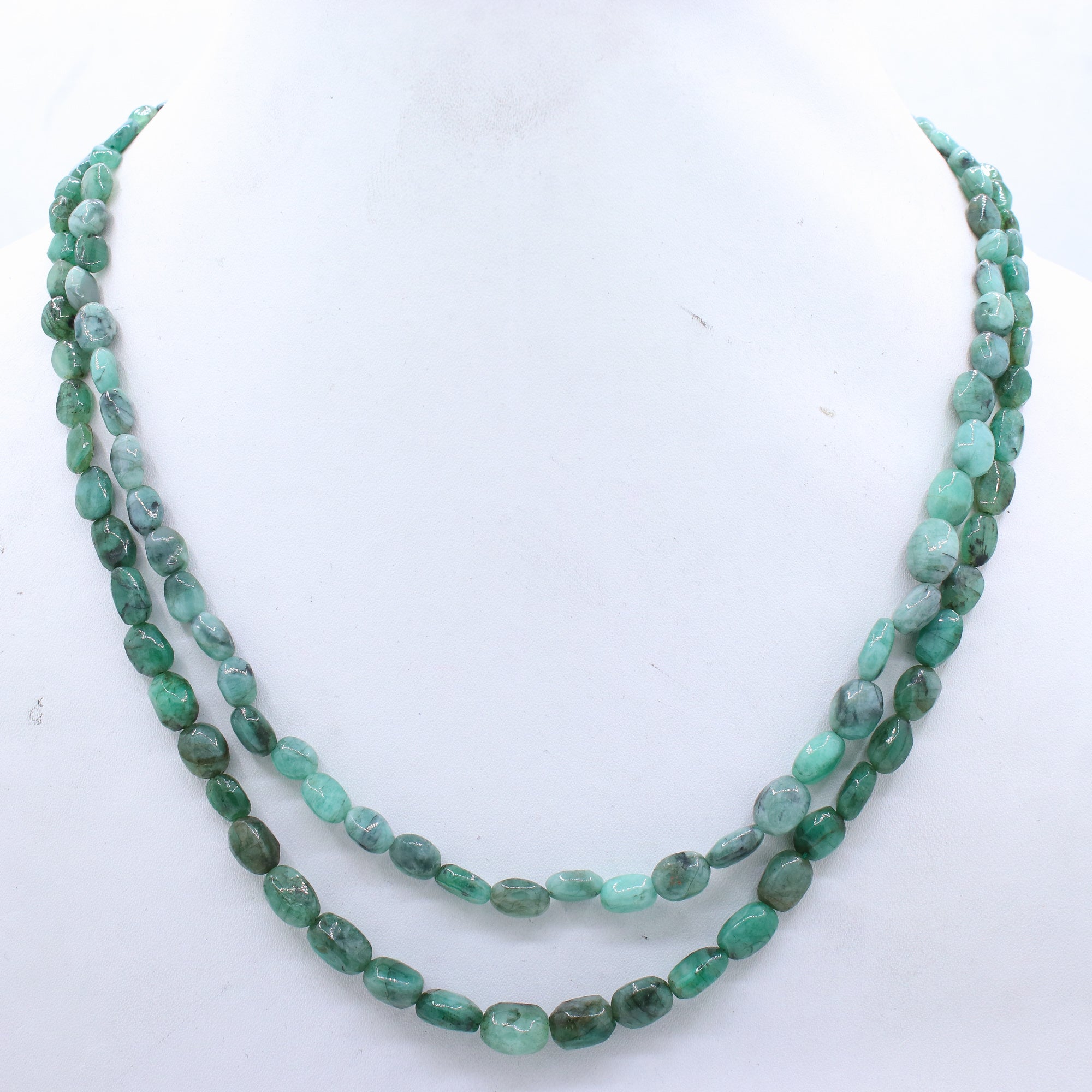Buy 2 Line Certified Handcrafted Natural Emerald Oval Shaped Cabochon Cut Beads Thread Necklace For Womens