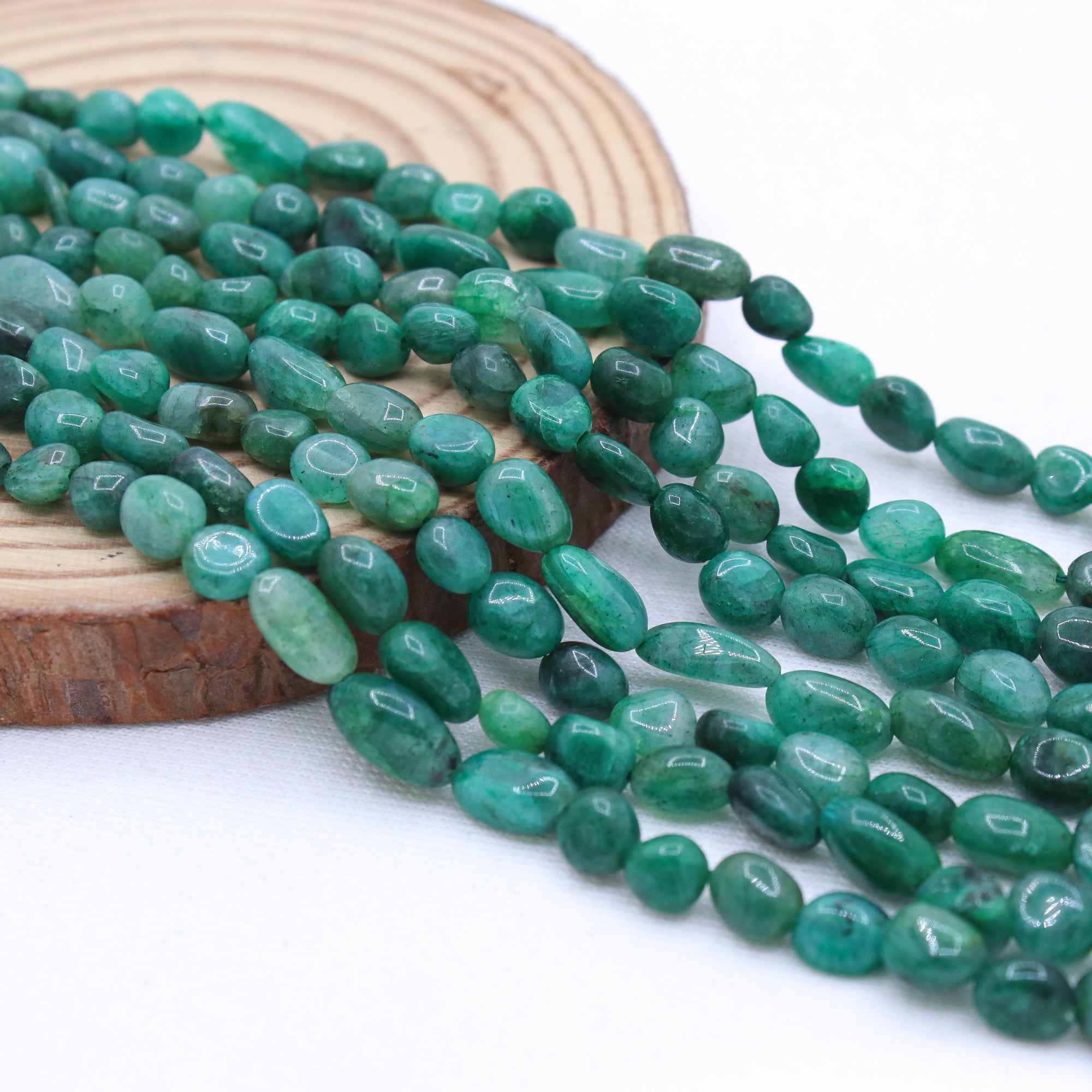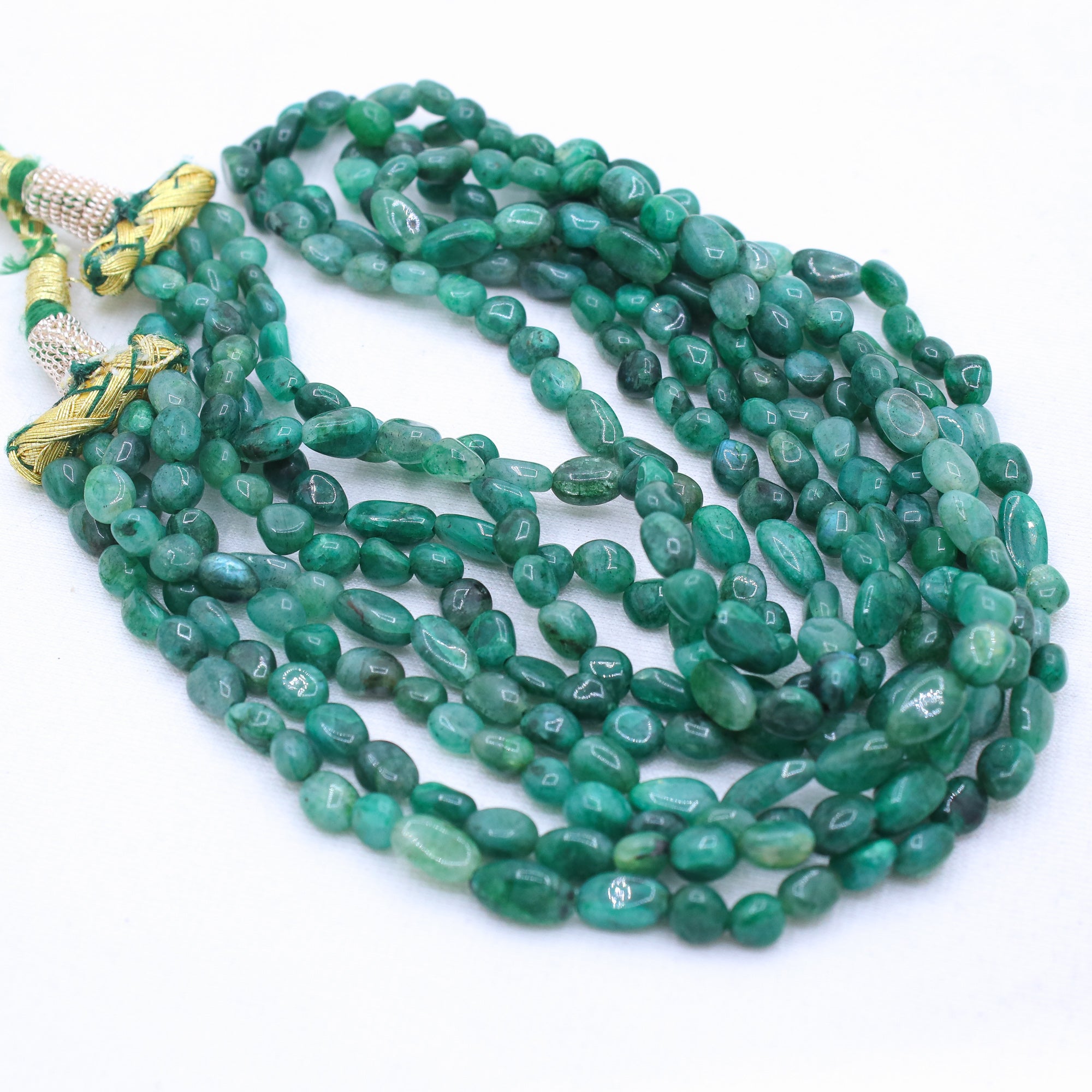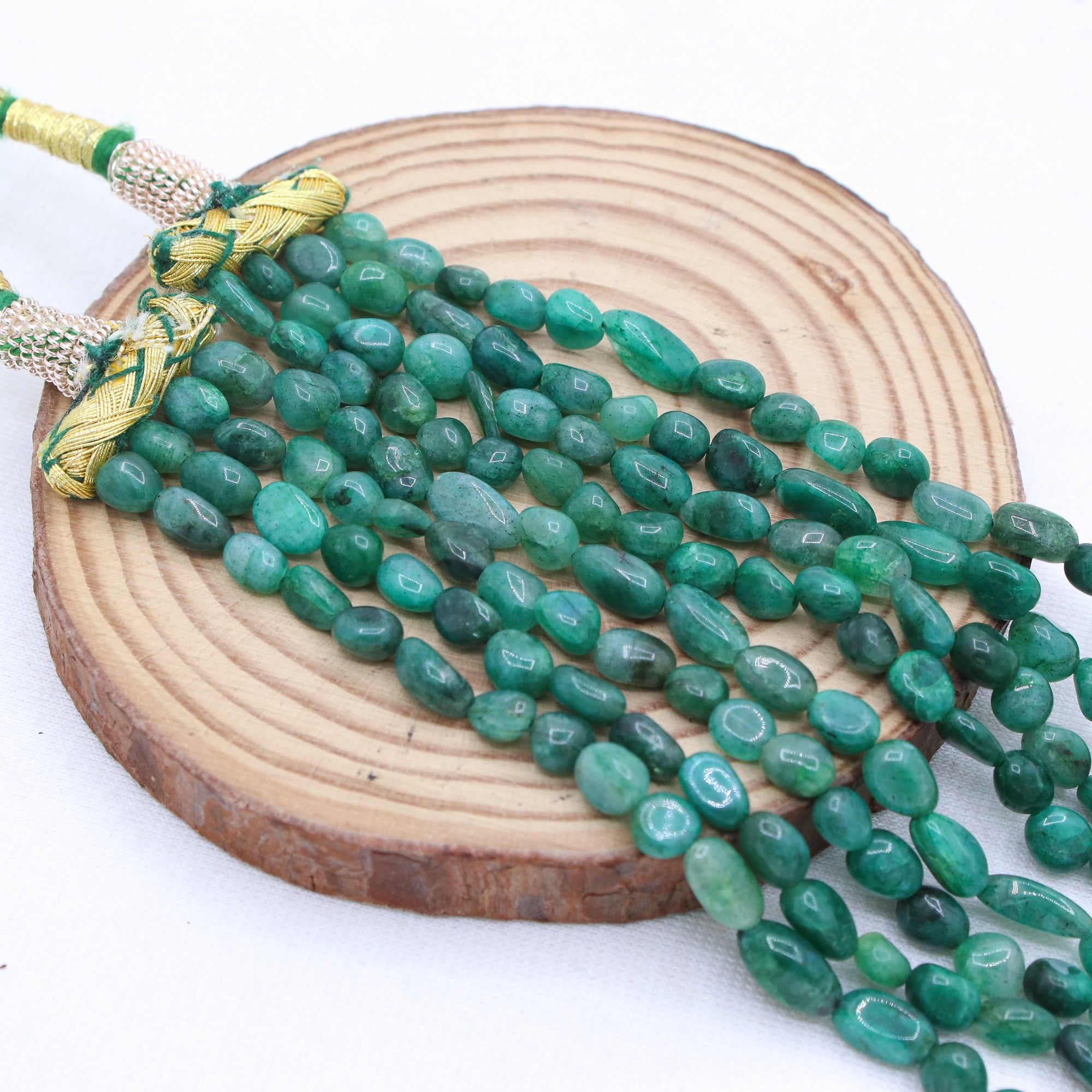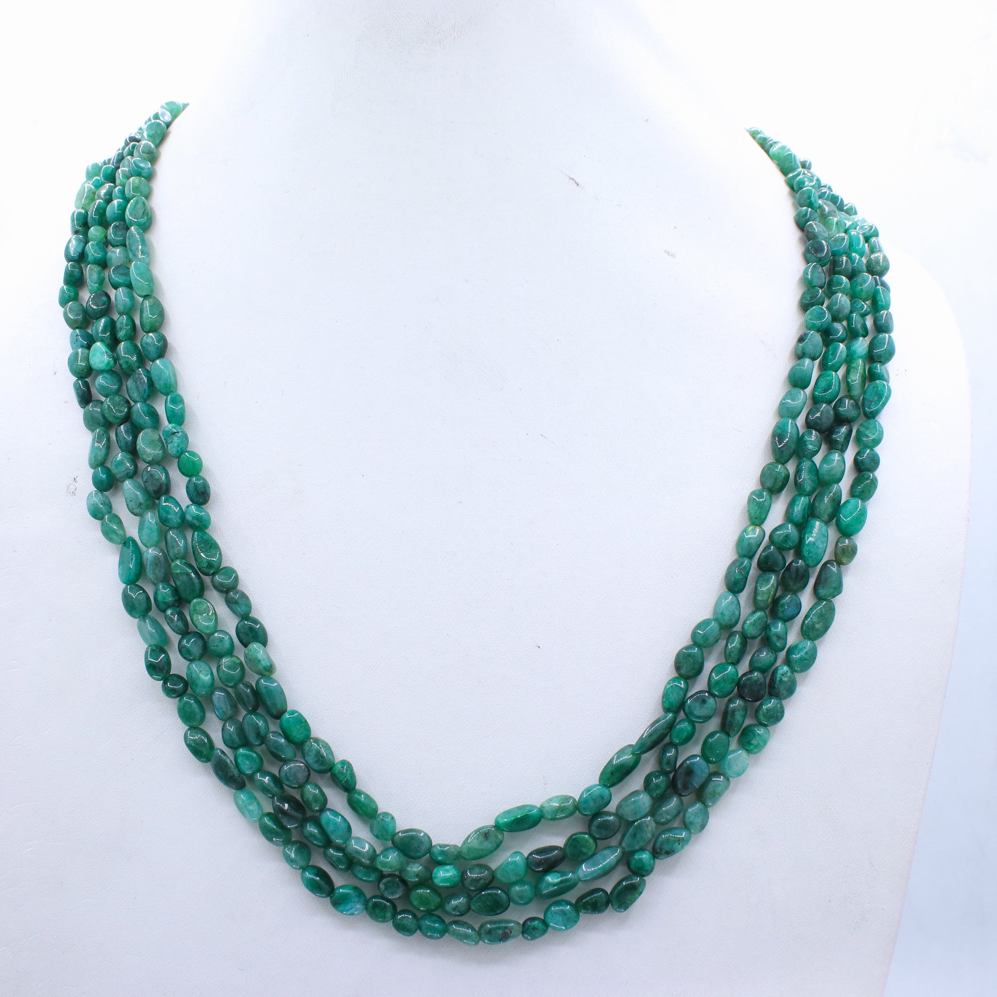 Buy 4 Line Certified Handcrafted Natural Emerald Oval Shaped Cabochon Cut Beads Thread Necklace For Womens