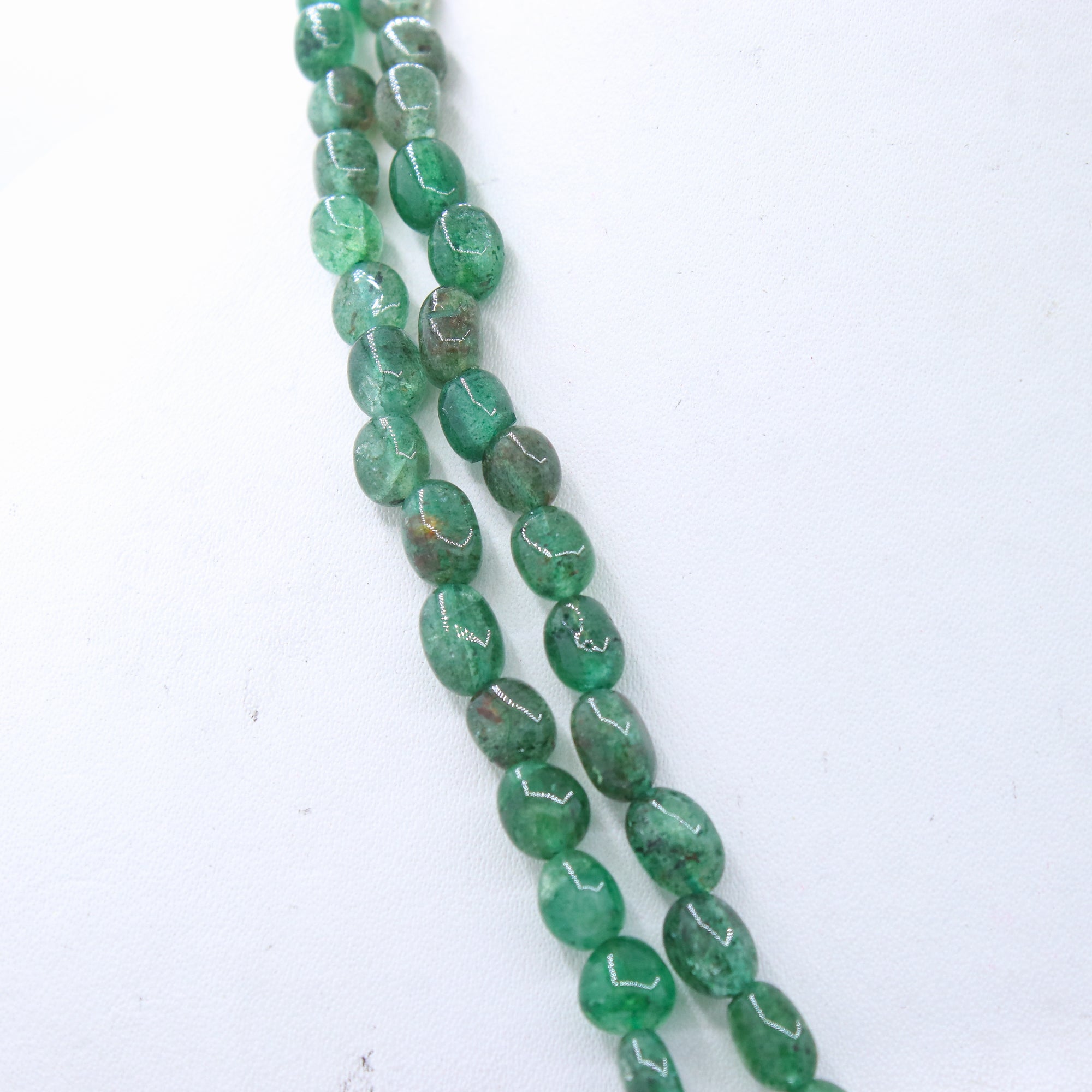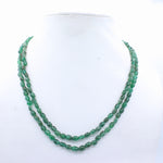 Buy 2 Line Certified Handcrafted Natural Emerald Oval Shaped Cabochon Cut Beads Thread Necklace For Womens