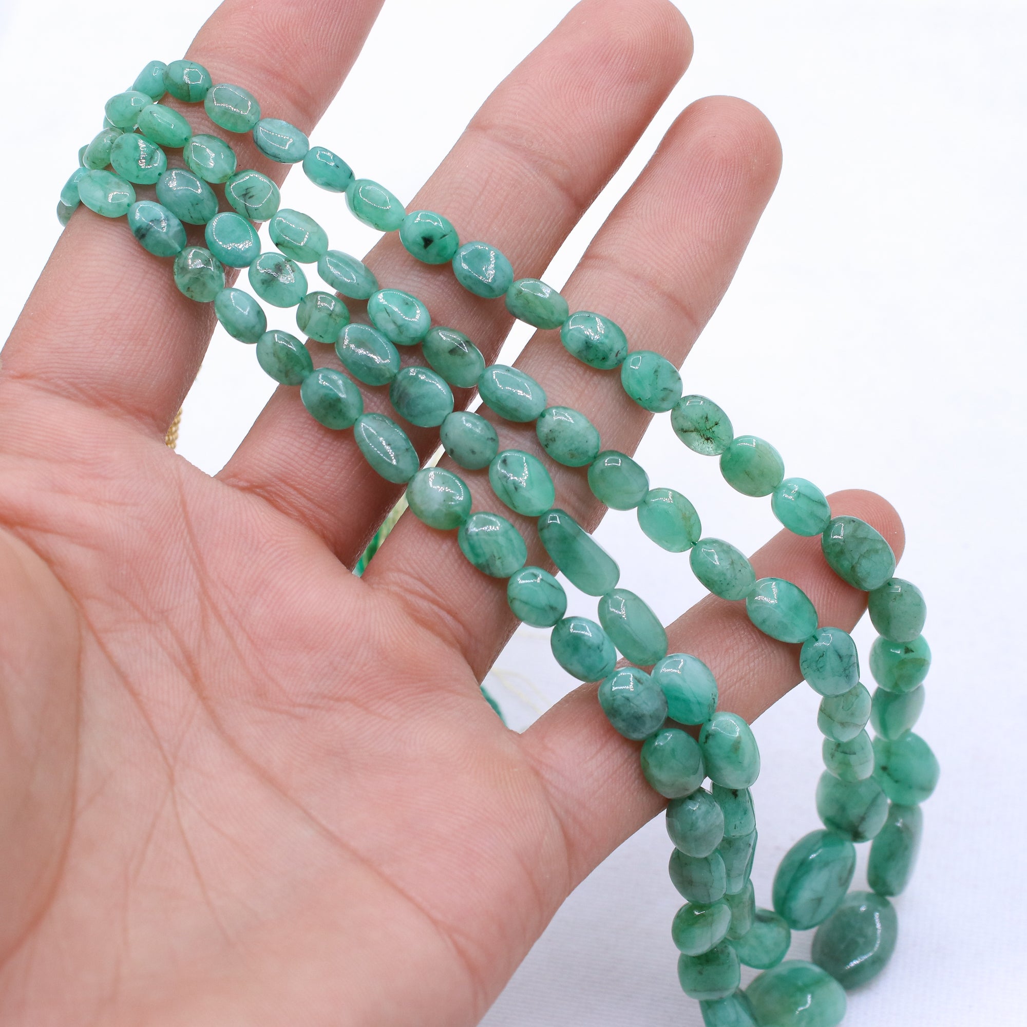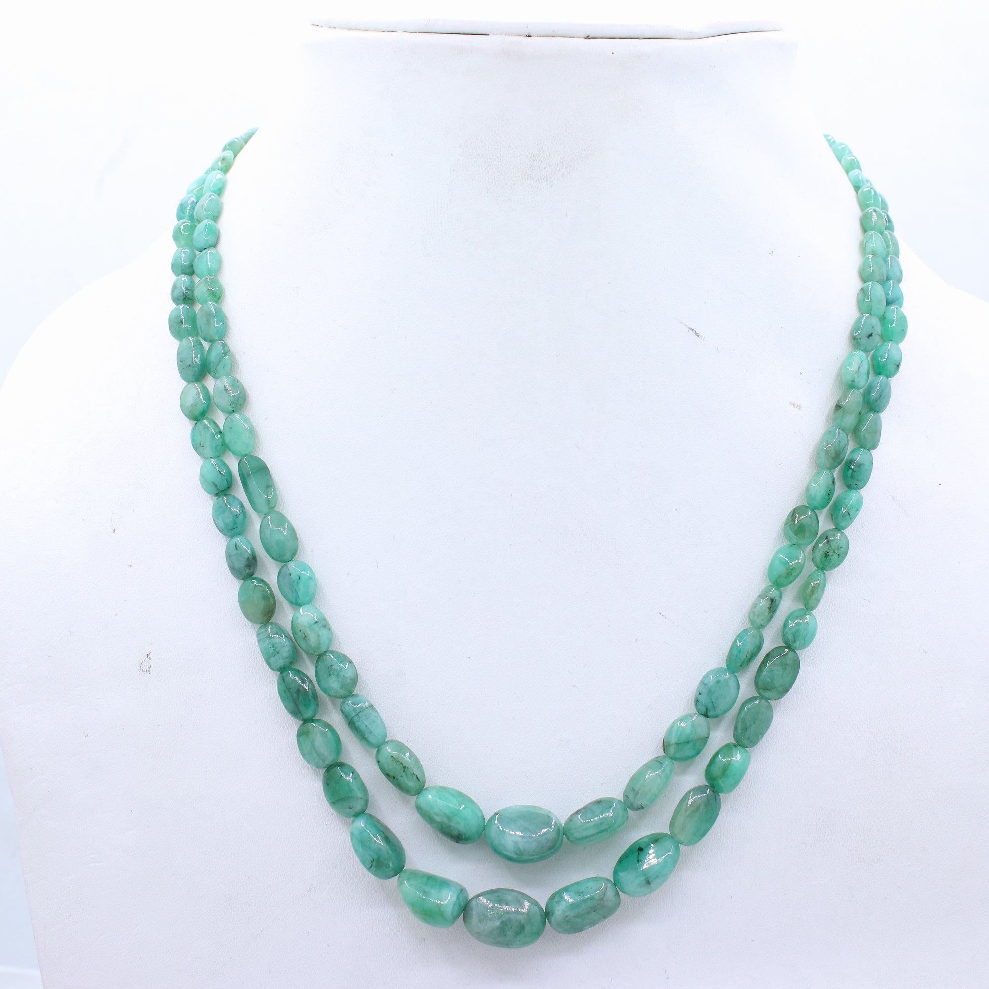 Buy 2 Layered Certified Handcrafted Natural Emerald Oval Shaped Cabochon Cut Beads Thread Necklace For Womens