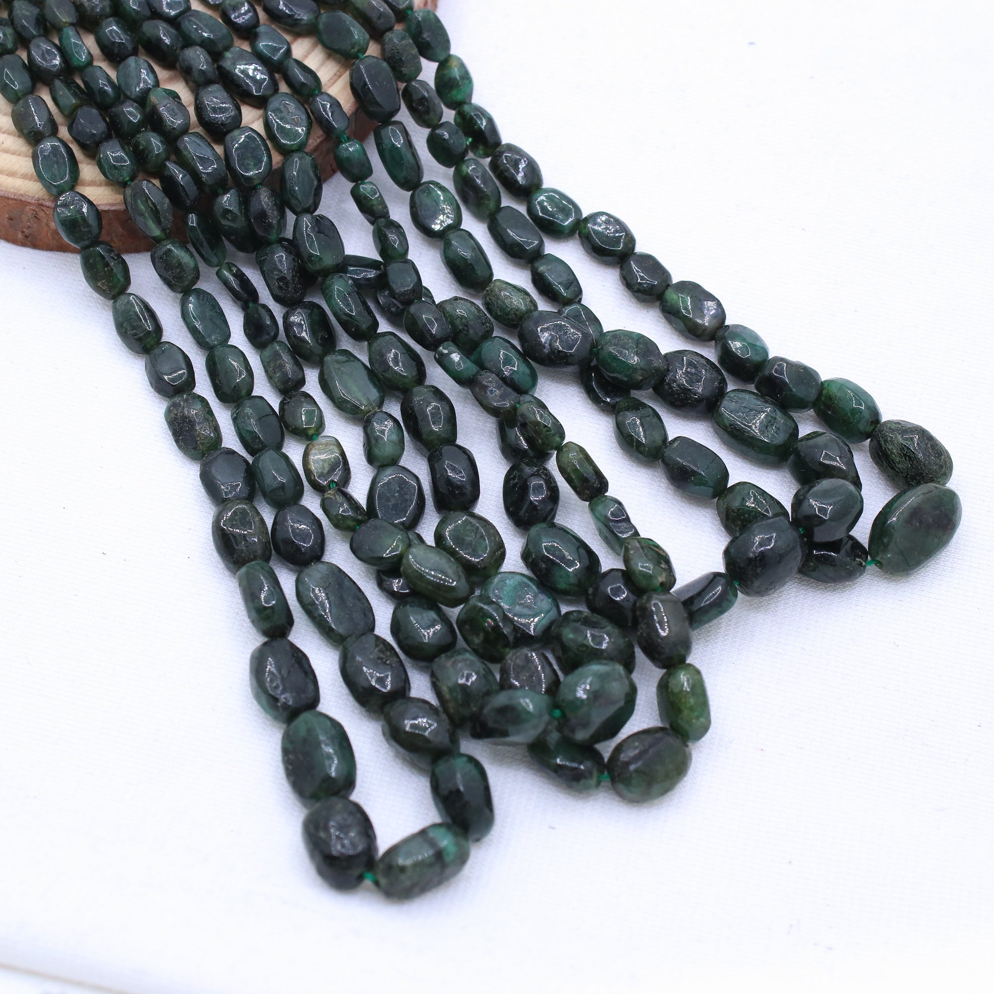 Buy Best Quality 5 Layered Certified Handcrafted Natural Emerald Oval Shaped Cabochon Cut Beads Thread Necklace For Womens