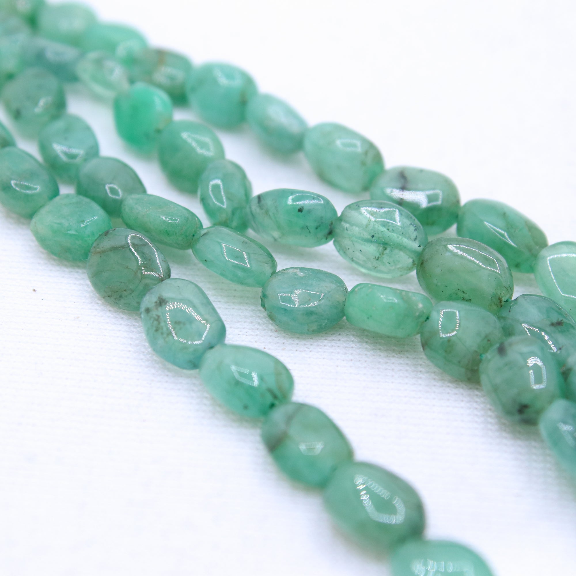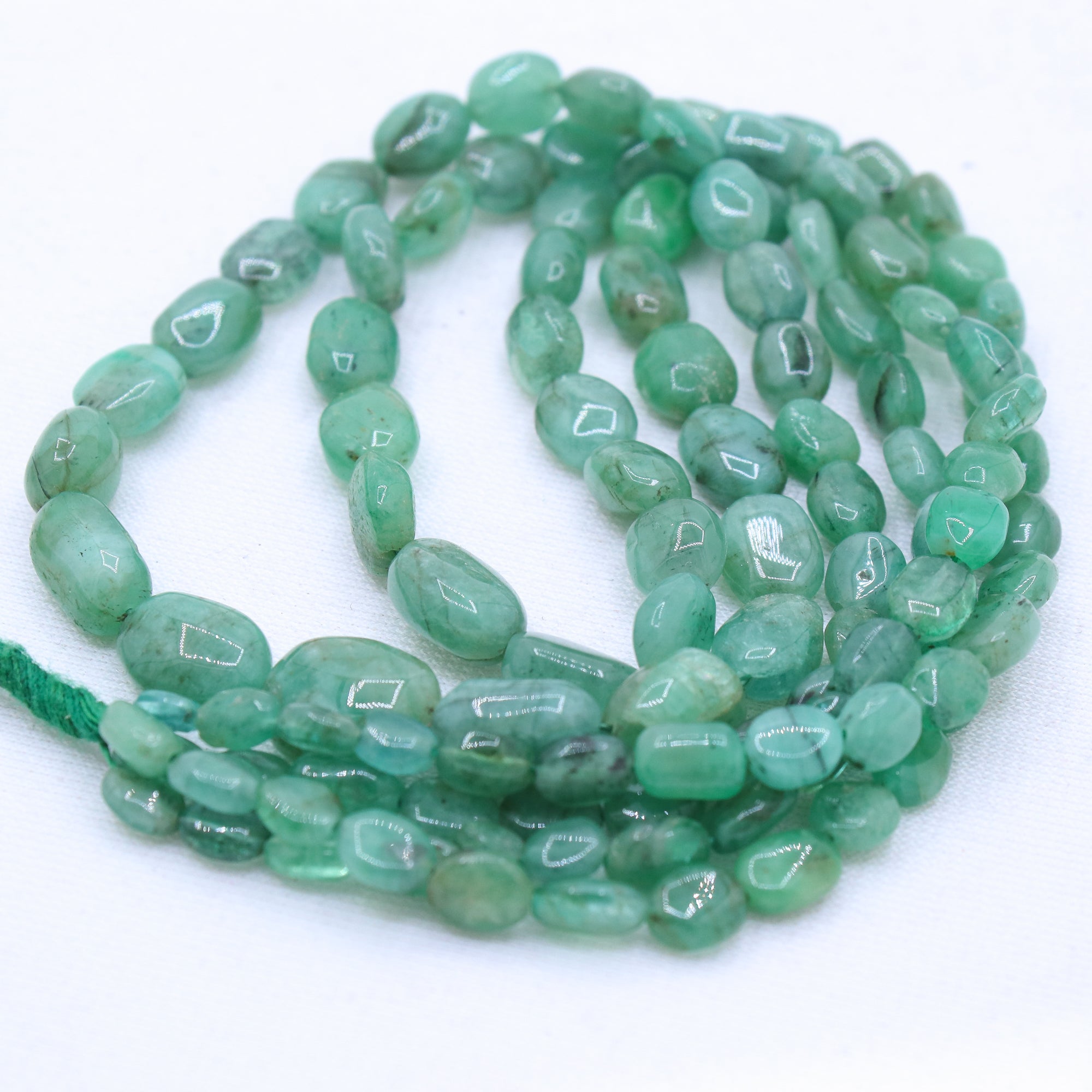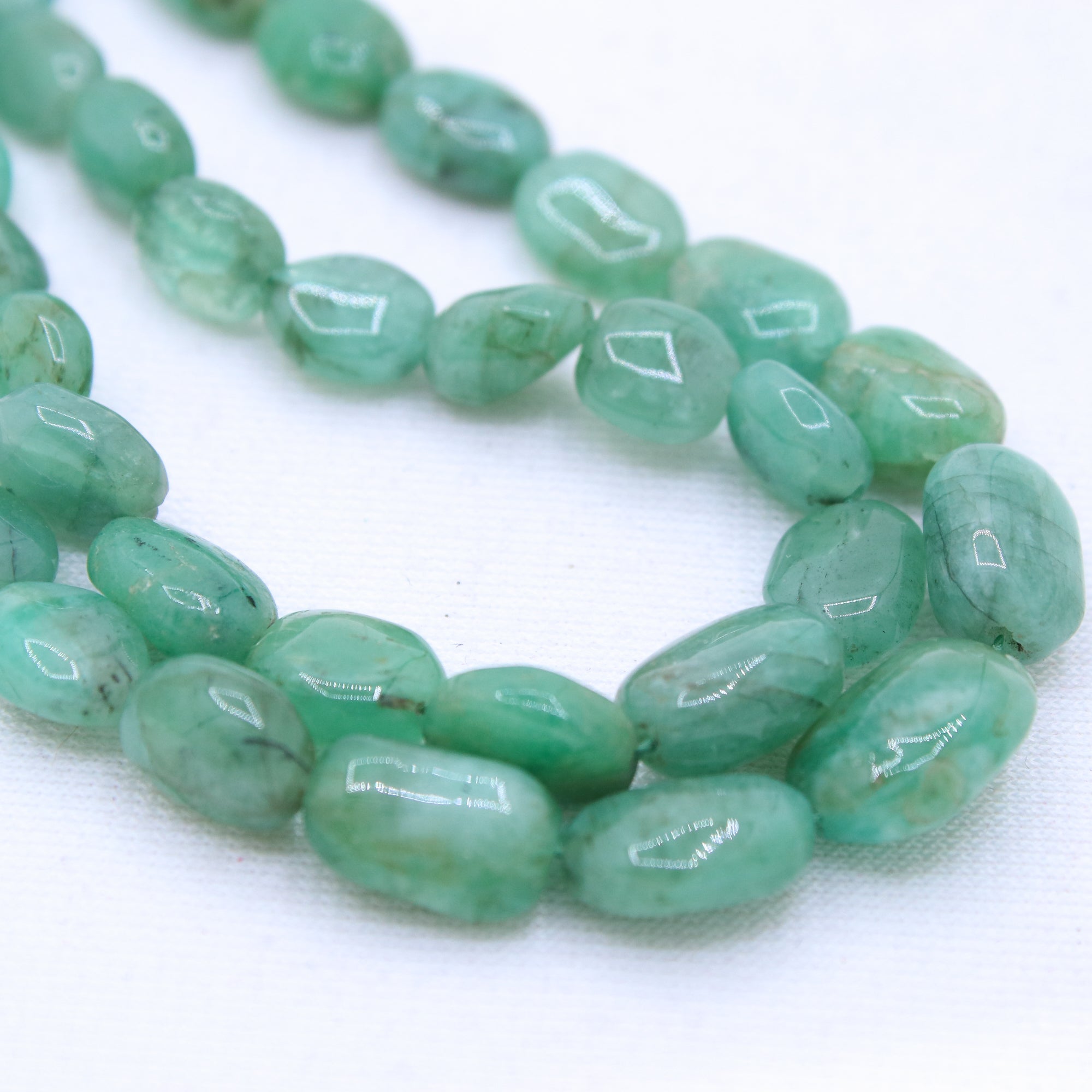 Buy Best Quality 2 Layered Certified Handcrafted Natural Emerald Oval Shaped Cabochon Cut Beads Thread Necklace For Womens