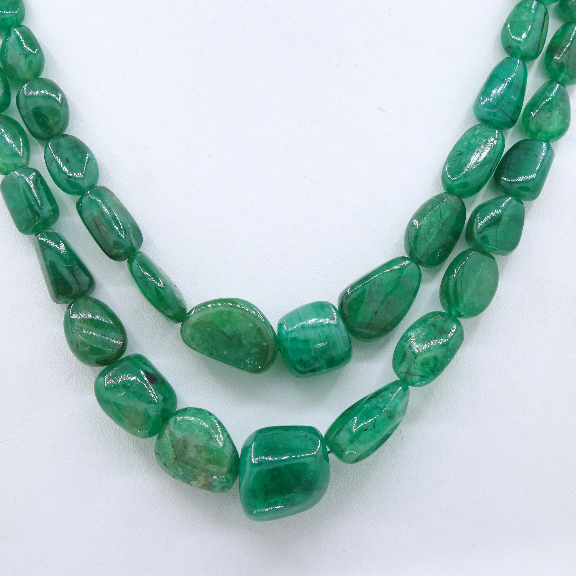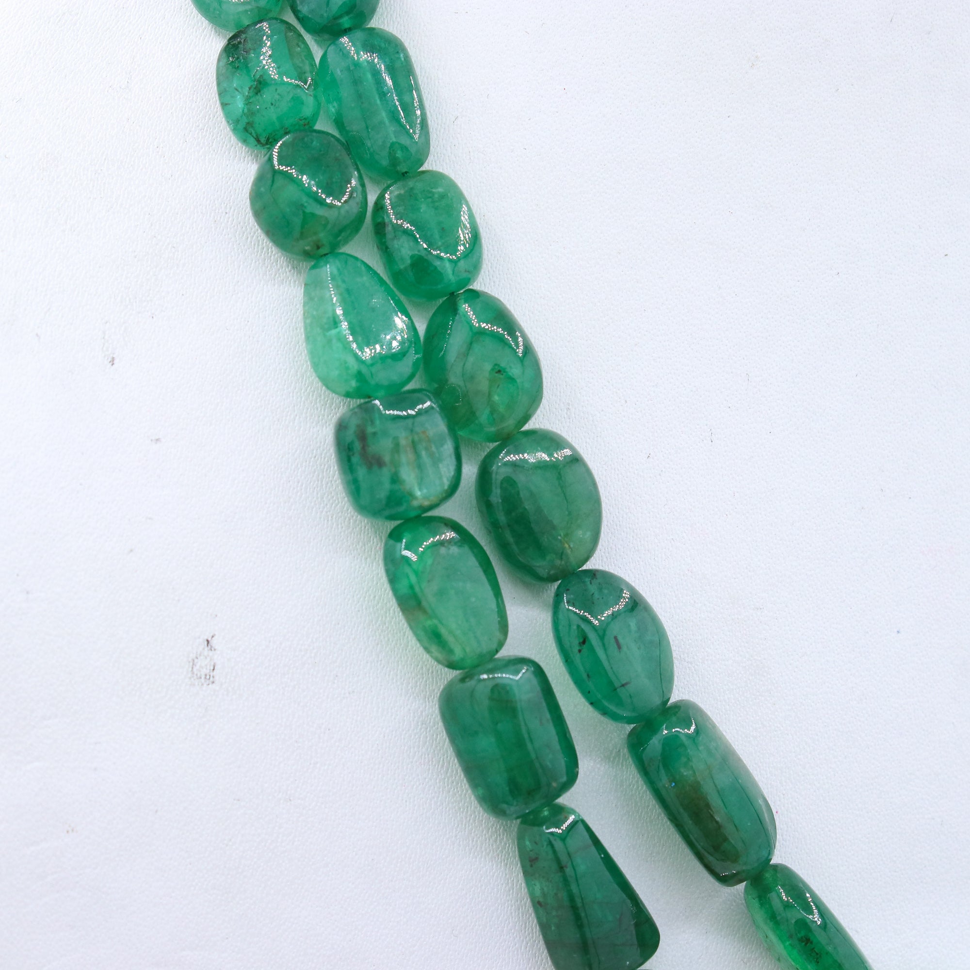 Buy High Quality 2 Line Certified Handcrafted Natural Emerald Mix Shaped Cabochon Cut Beads Thread Necklace For Womens