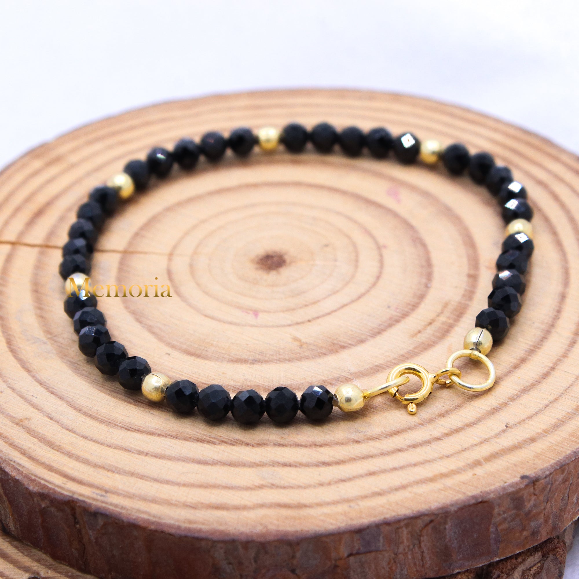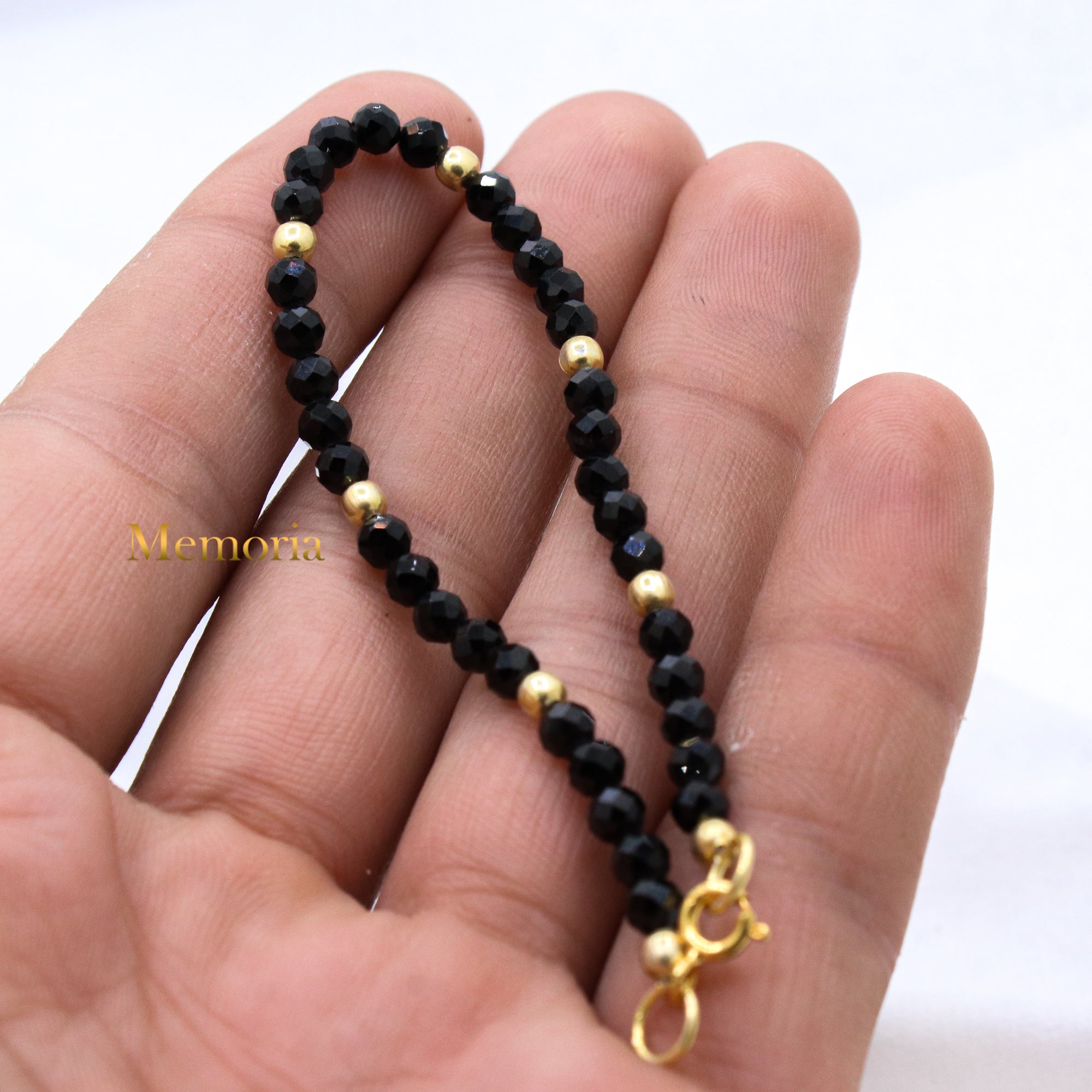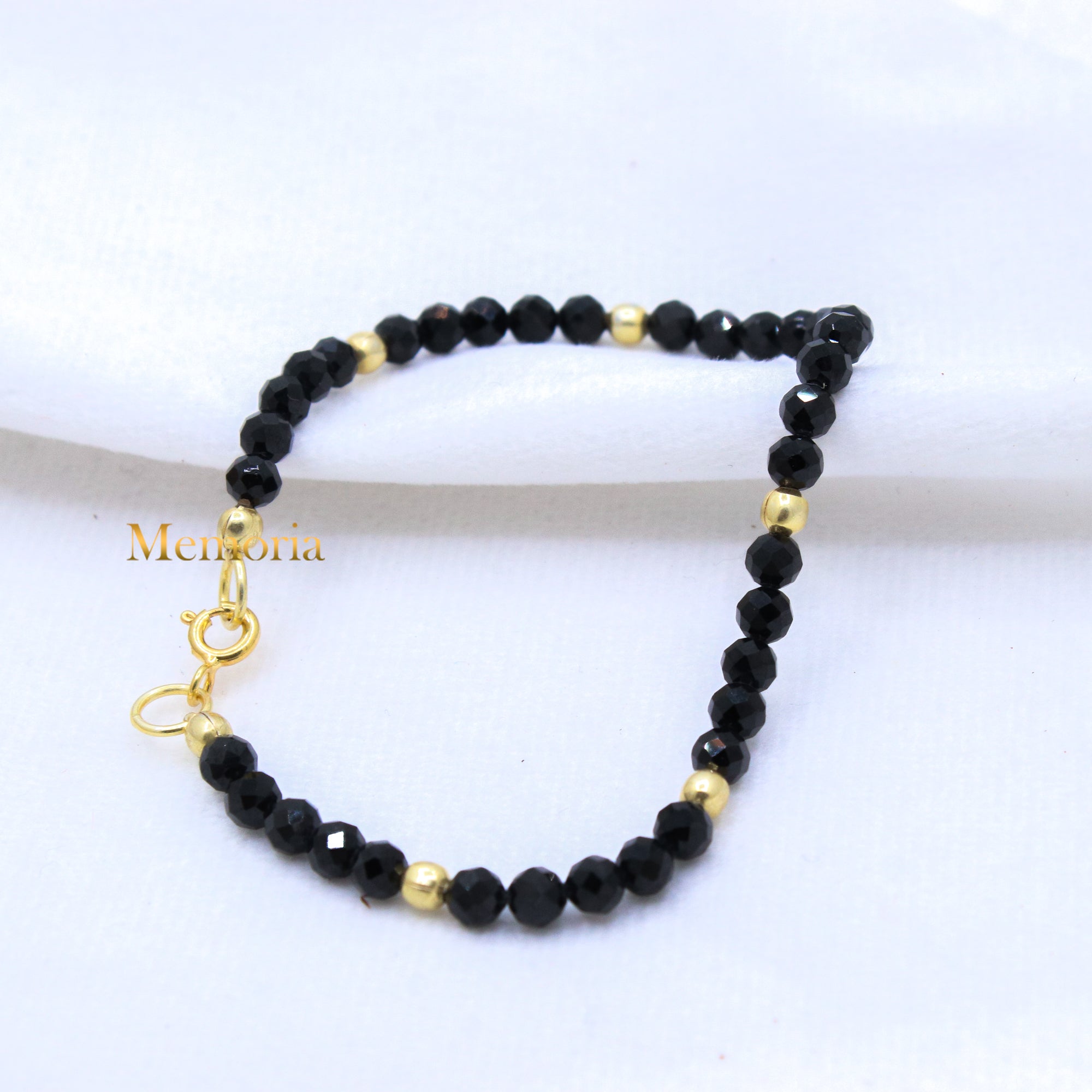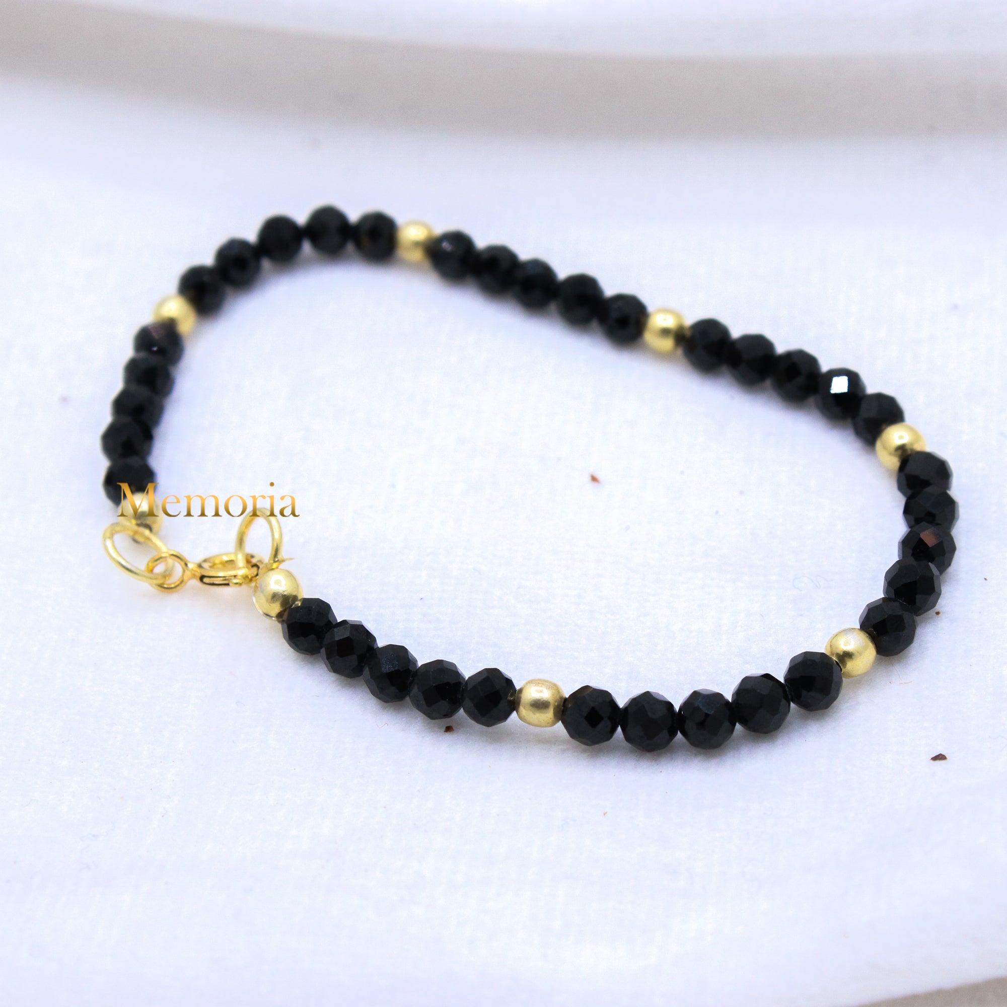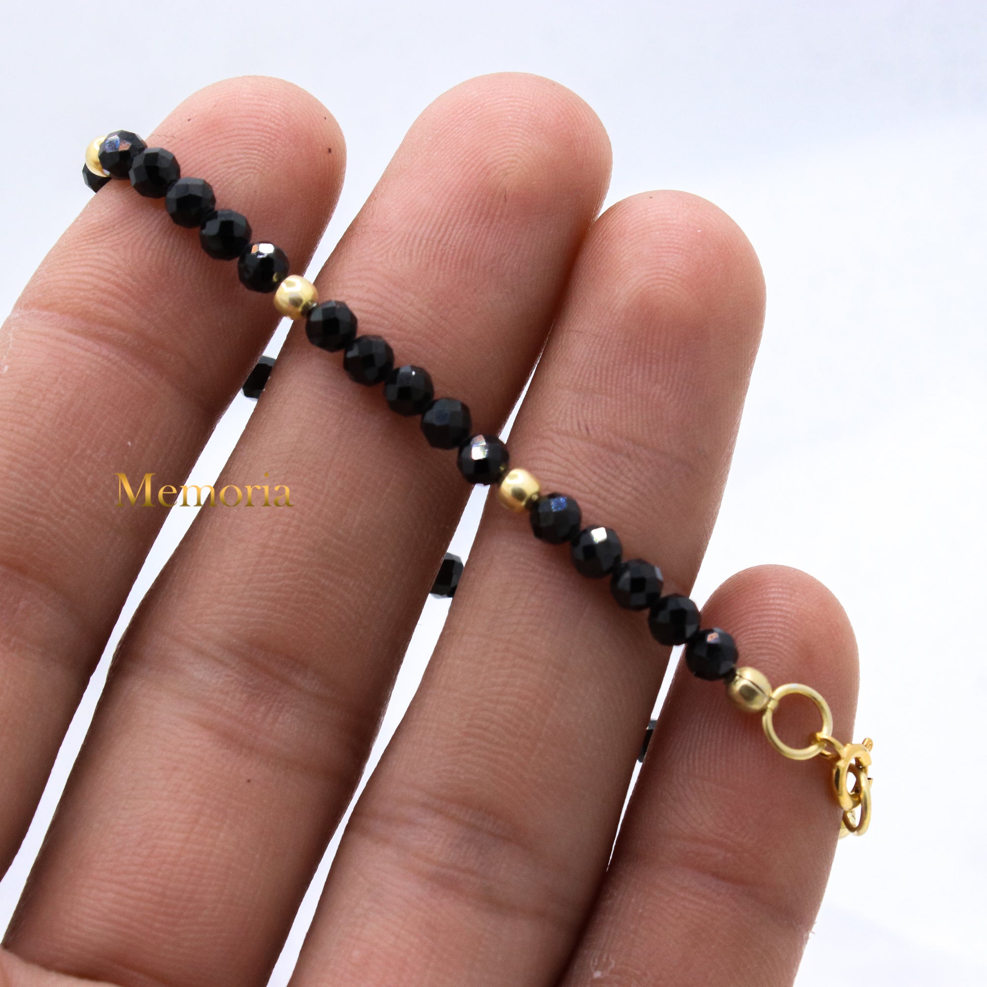 Buy Certified Handmade Natural Round Faceted Chakra Healing Black Onyx Gemstone Beaded Stretchable Bracelet