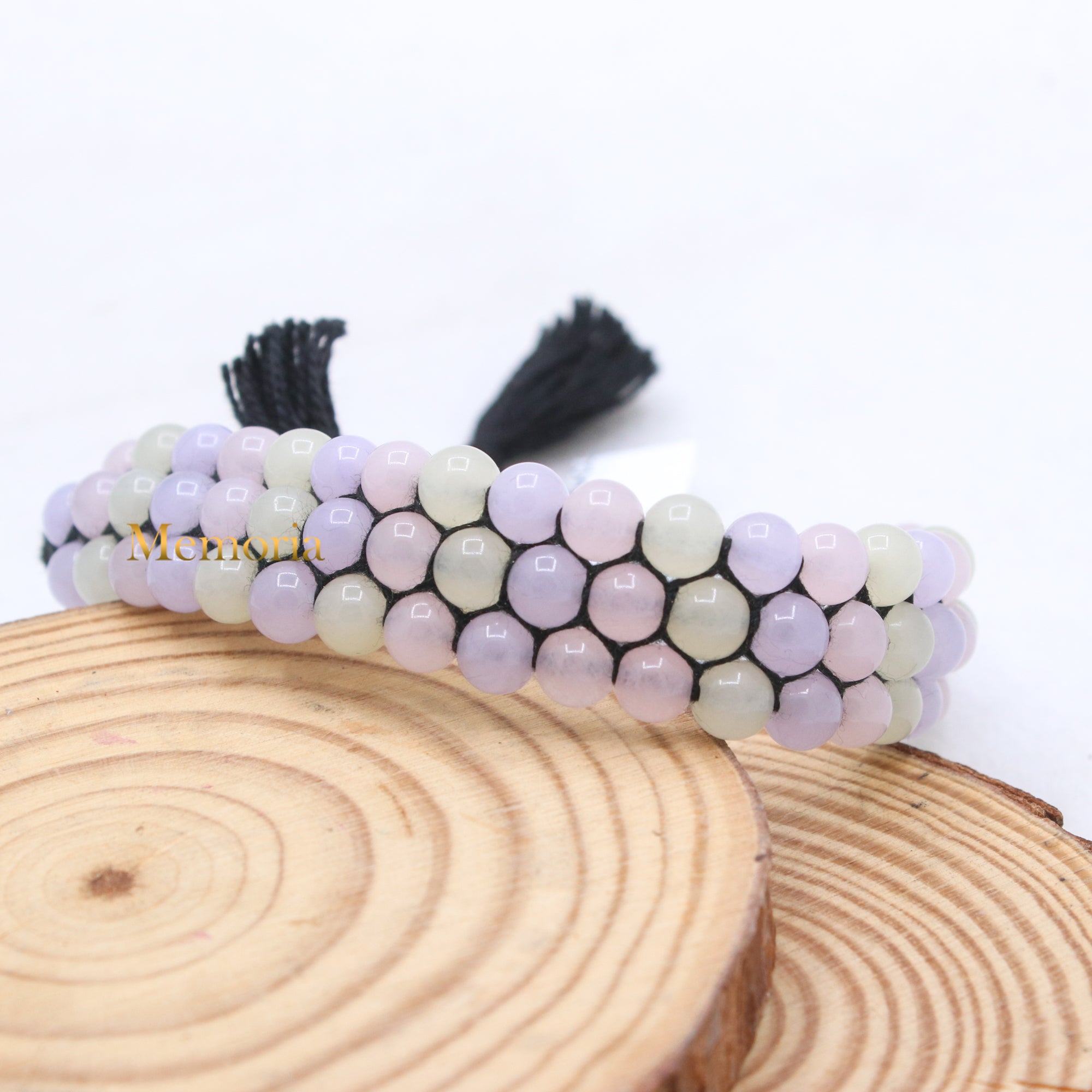 Buy Certified Handmade Natural Chalcedony Round Smooth Chakra Healing Gemstone Beaded Adjustable Thread Bracelet