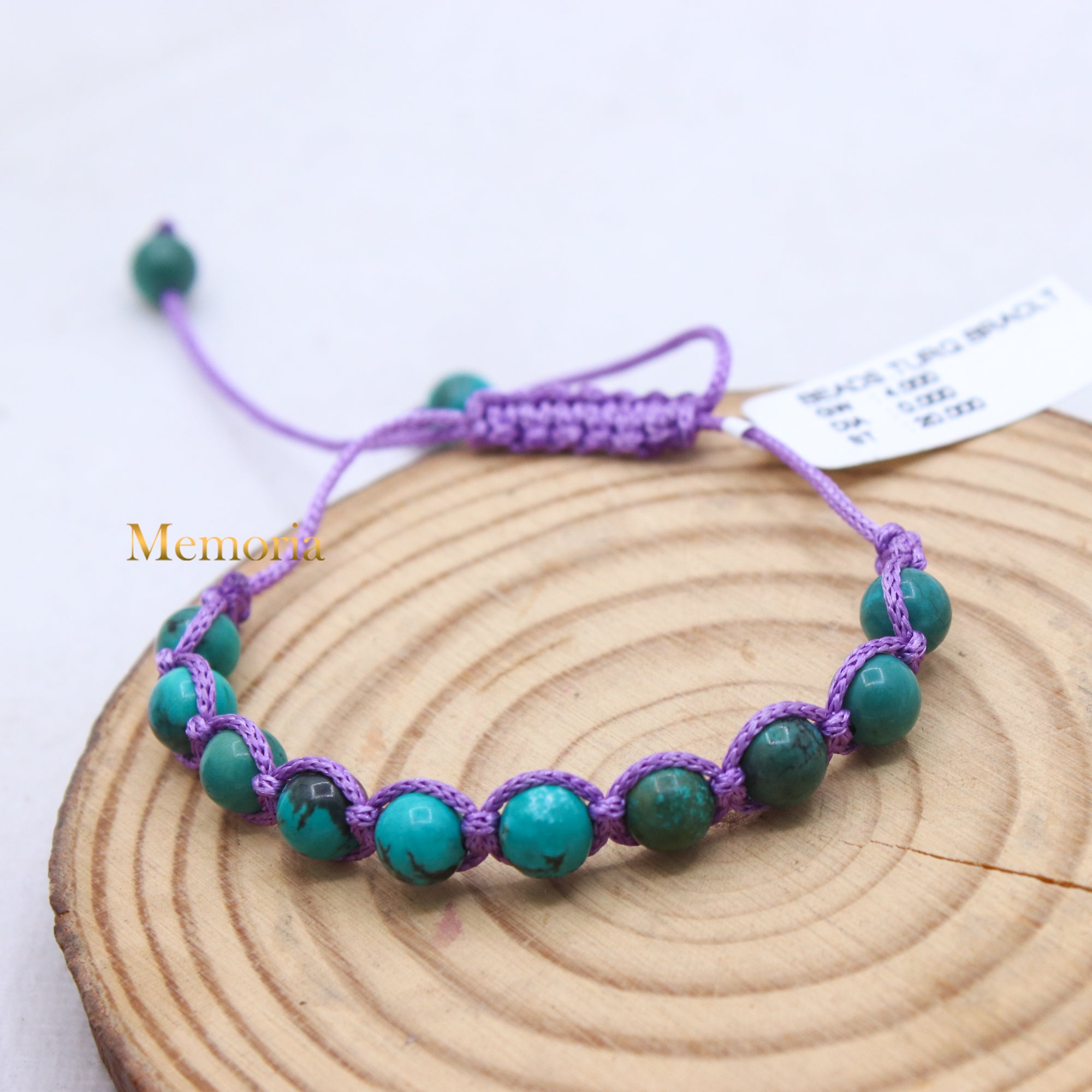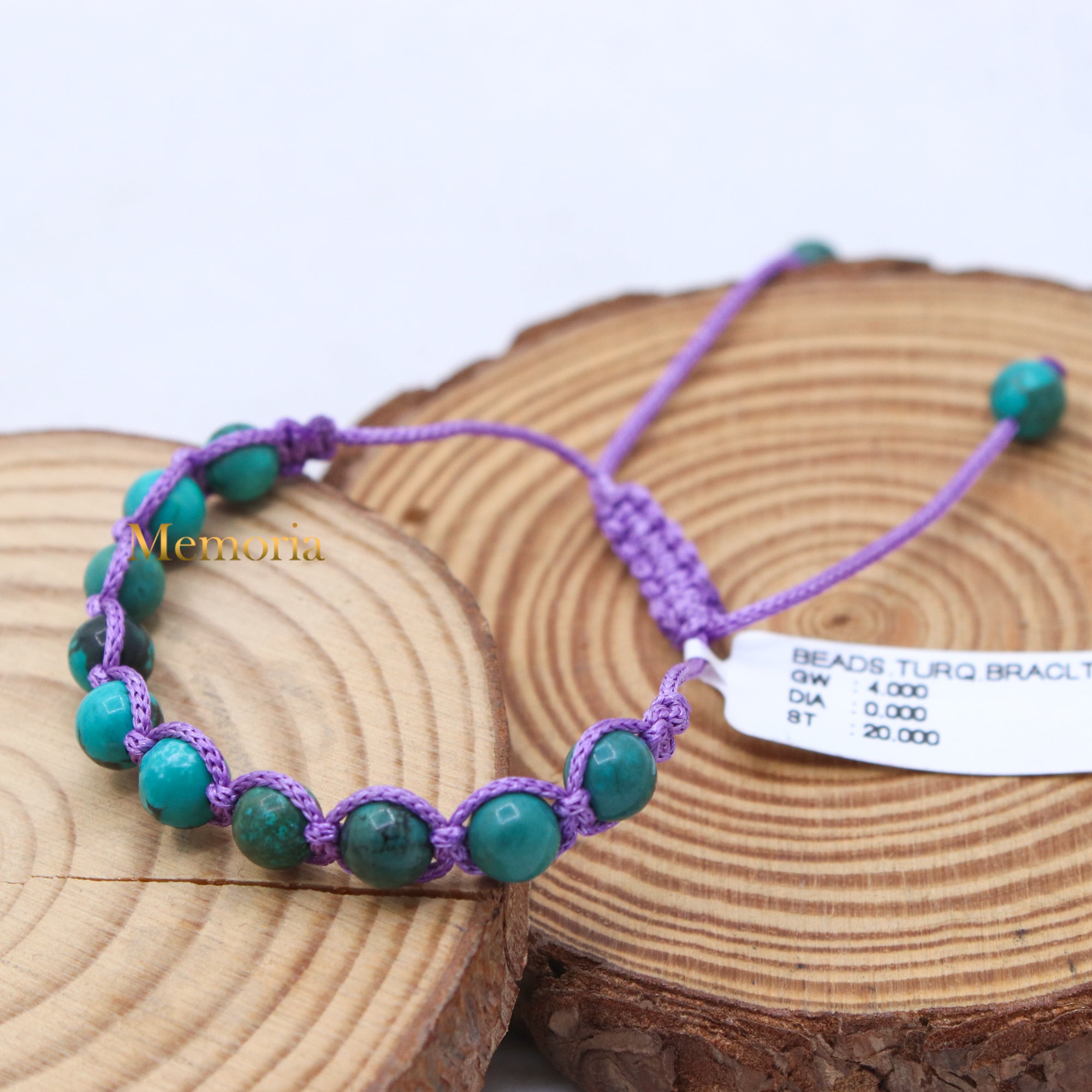 Buy Certified Handmade Natural Turquoise Round Smooth Healing Gemstone Beaded Adjustable Thread Bracelet
