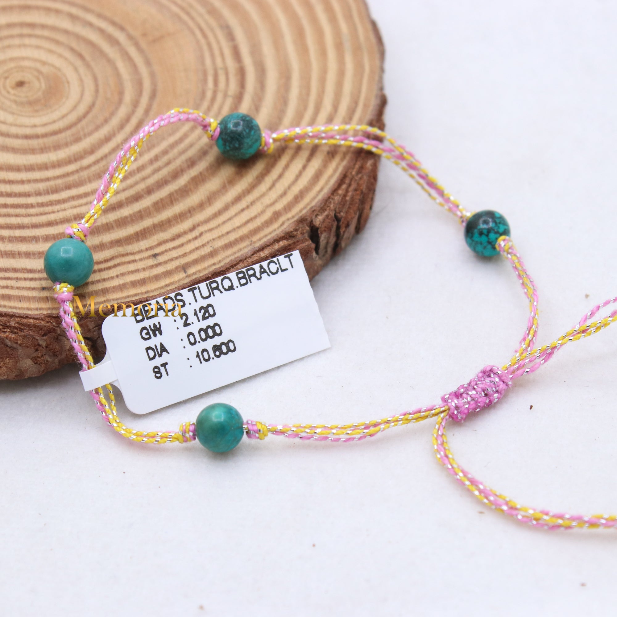 Buy Certified Handmade Natural Turquoise Round Smooth Healing Gemstone Beaded Adjustable Thread Bracelet