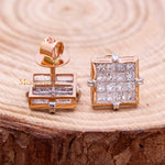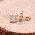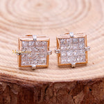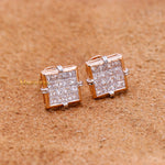 Sqaure Natural Diamond 18k Rose Gold Stud Earring