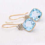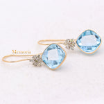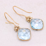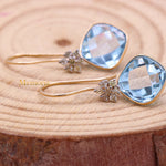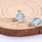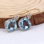 Buy Best Quality Certified Designer Natural Blue Topaz Cushion Shaped Faceted Cut Spiritual Chakra Healing Gemstone Drop Earring In 14k Yellow Gold