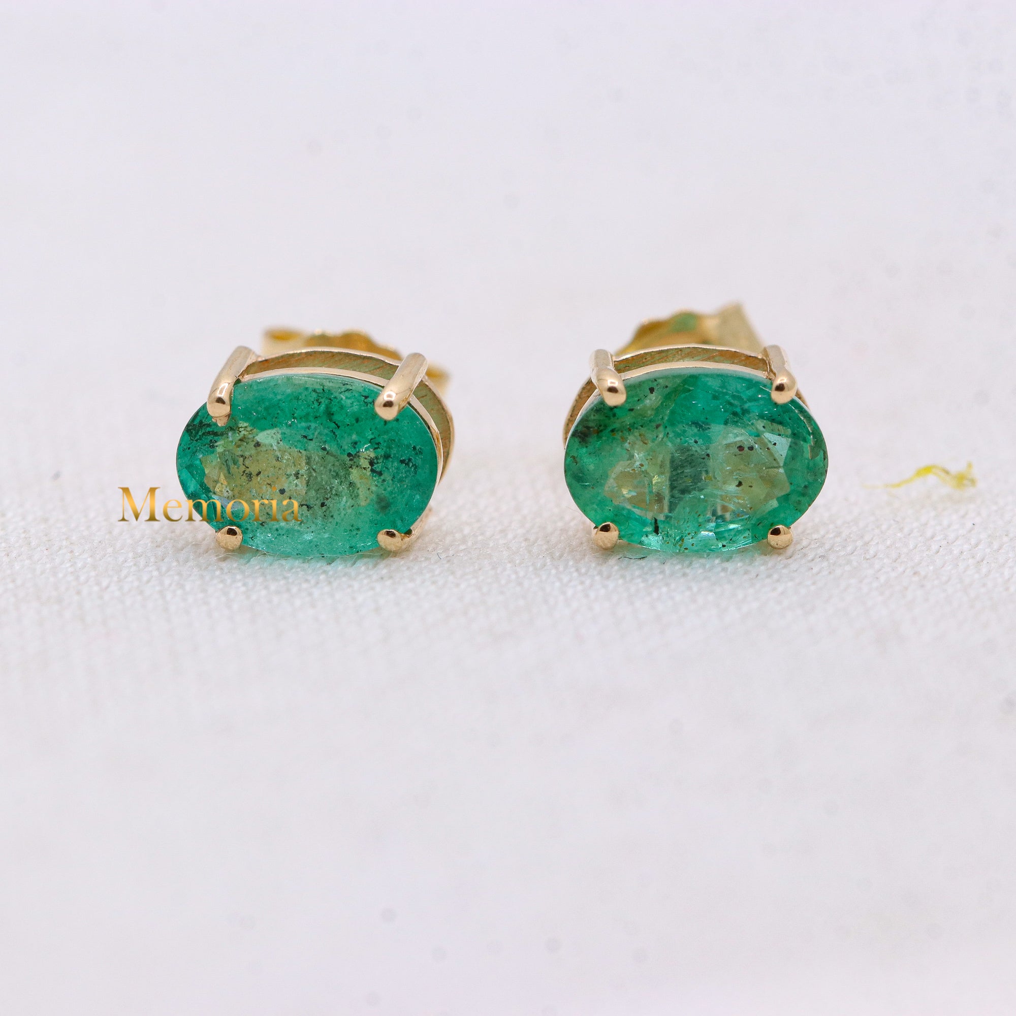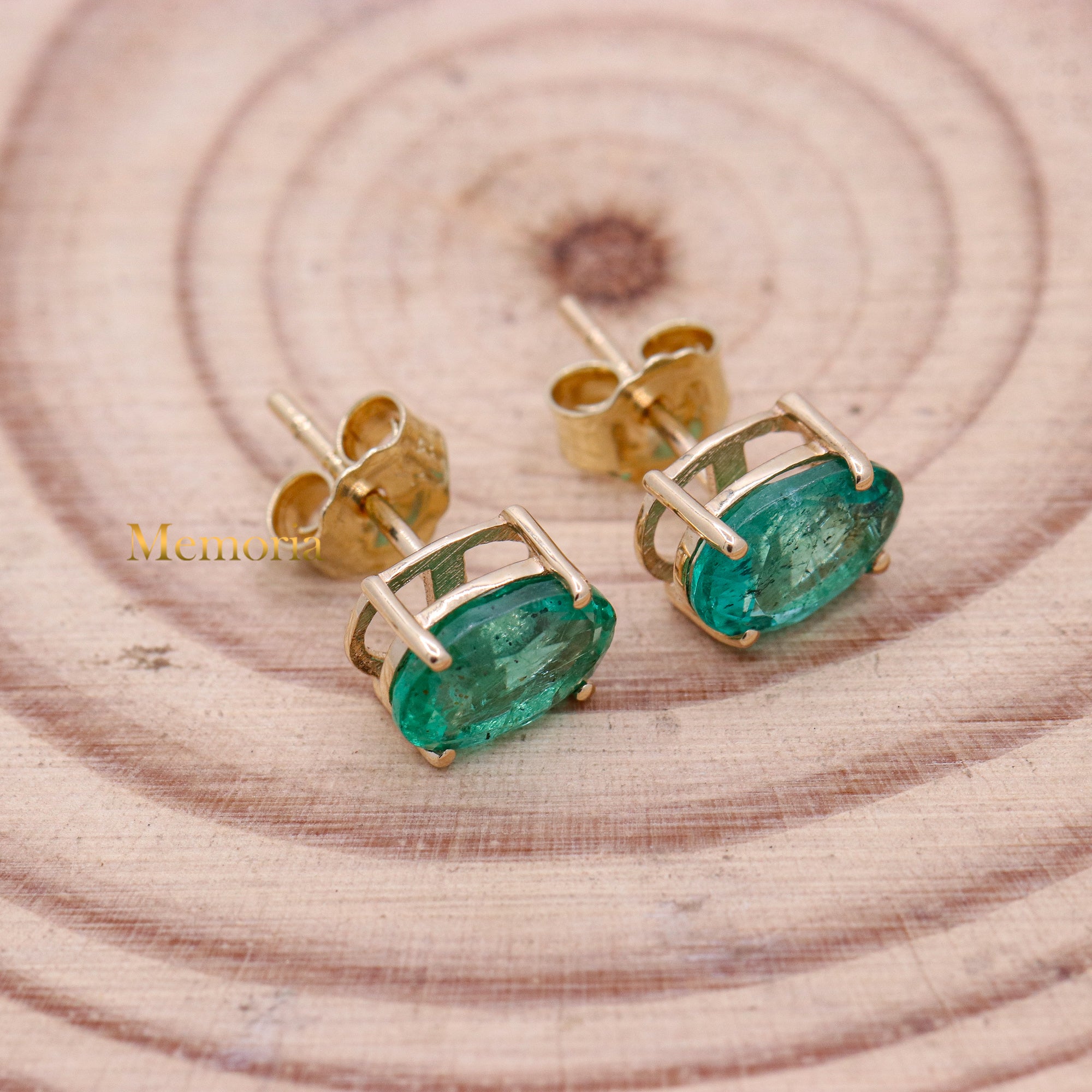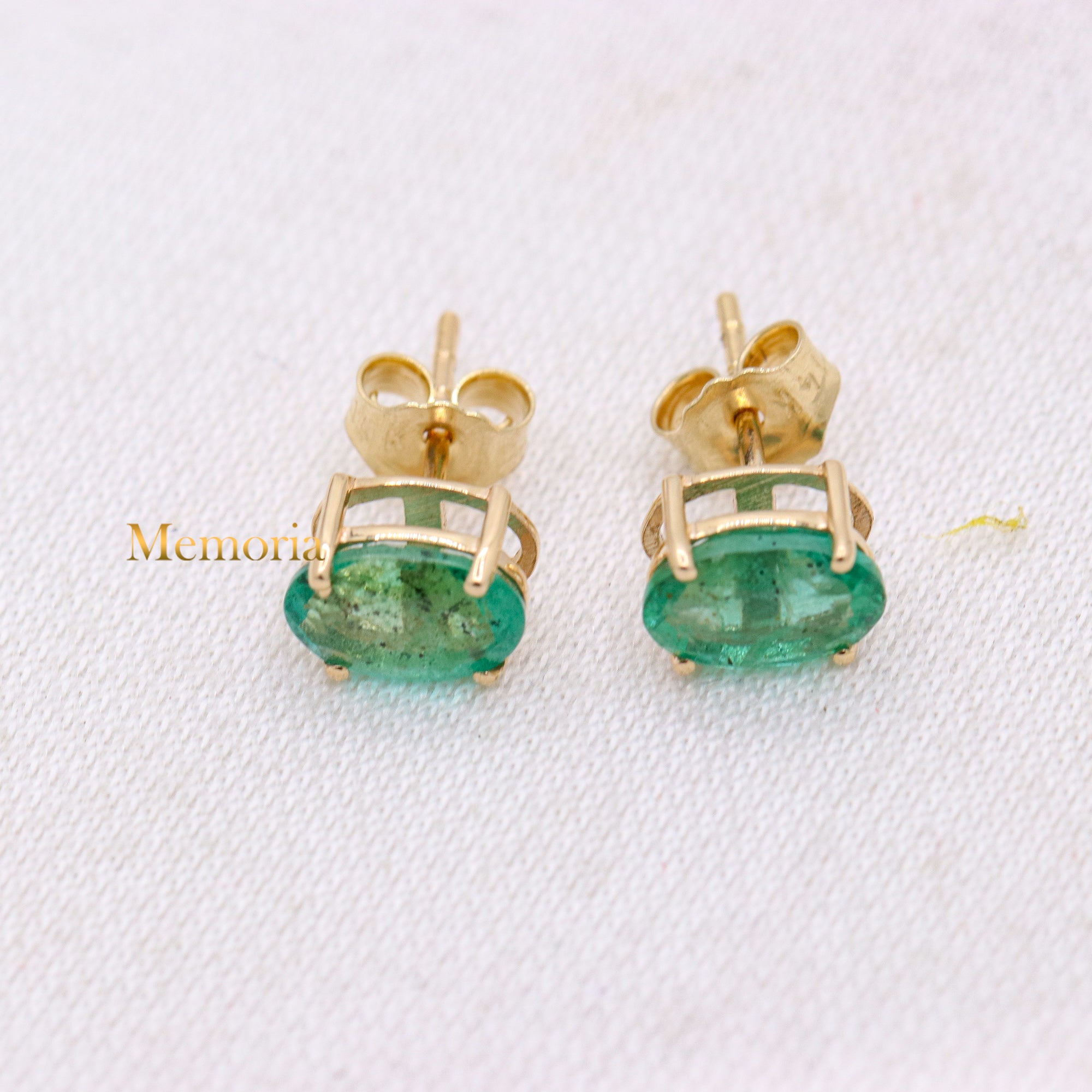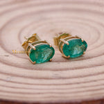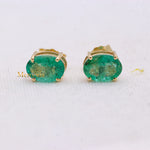 Buy Best Quality Certified Designer Natural Emerald Oval Shaped Faceted Cut Spiritual Chakra Healing Gemstone Stud Earring In 14k Yellow Gold