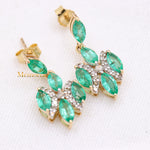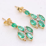 Natural Emerald Gemstone & Diamond 14k Yellow Gold Dangle Earring