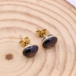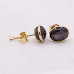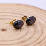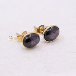 Buy Best Quality Certified Designer Natural Star Ruby Oval Shaped Cabochon Cut Spiritual Chakra Healing Gemstone Stud Earring In 14k Yellow Gold