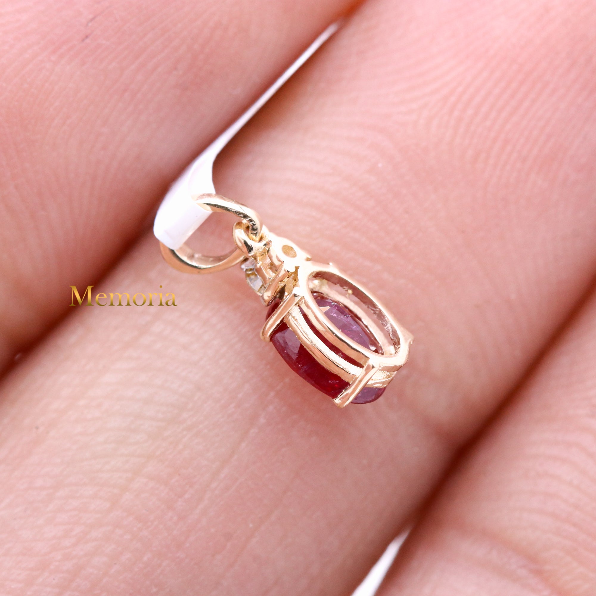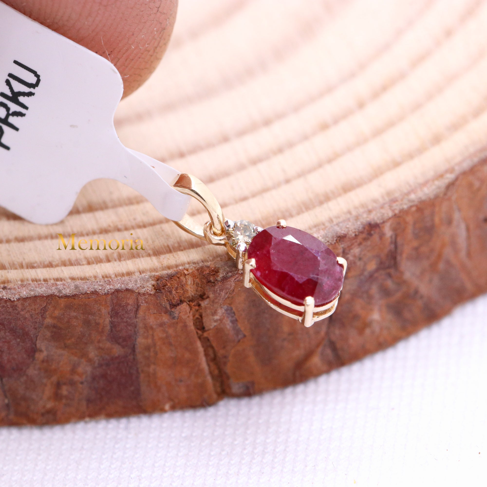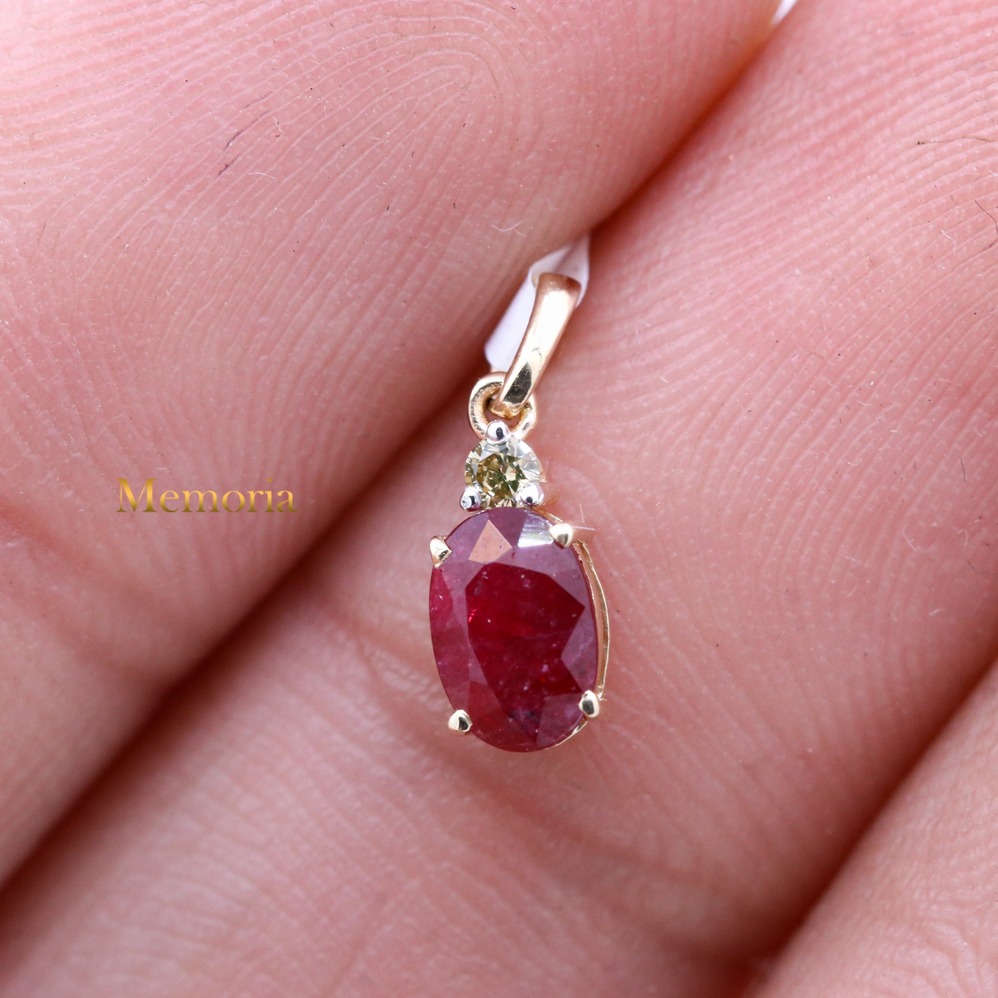 Buy Best Quality Certified Birthstone Natural Ruby Oval Shaped Faceted Cut Spiritual Chakra Healing Gemstone With Diamond Pendant In 14k Yellow Gold