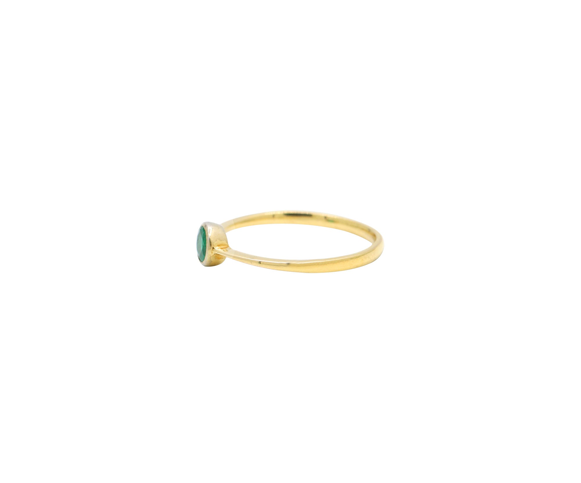 9K Yellow Gold Round Shaped Natural Emerald Gemstone Healing Ring
