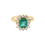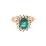 Natural Emerald Gemstone & Diamond 18k White Gold Handmade Ring For Womens