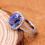 Buy Best Quality Certified Designer Natural Blue Sapphire Cushion Shaped Faceted Cut Spiritual Chakra Healing Gemstone With Diamond Ring In 18k White Gold