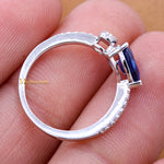 Buy Best Quality Certified Designer Natural Blue Sapphire Pear Shaped Faceted Cut Spiritual Chakra Healing Gemstone With Diamond Ring In 18k White Gold