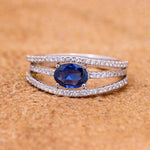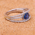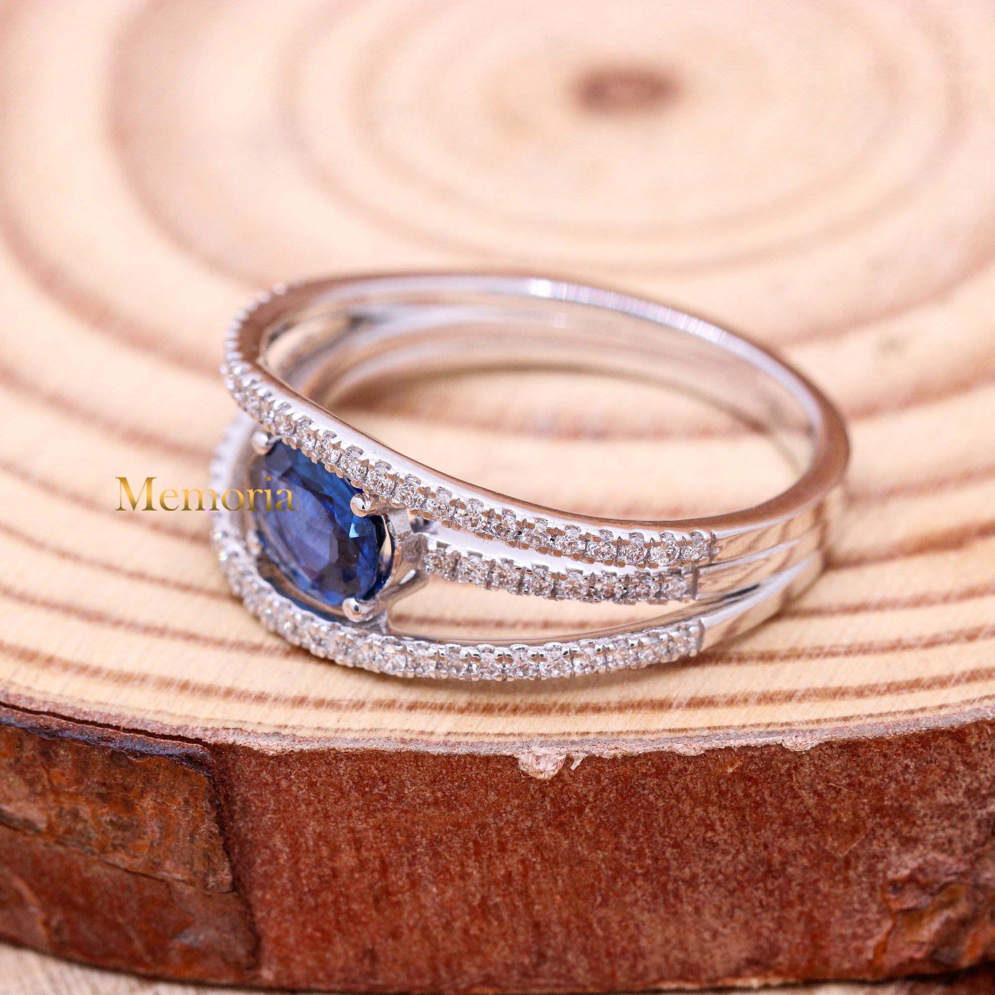 Buy Best Quality Certified Designer Natural Blue Sapphire Oval Shaped Faceted Cut Spiritual Chakra Healing Gemstone With Diamond Ring In 18k White Gold