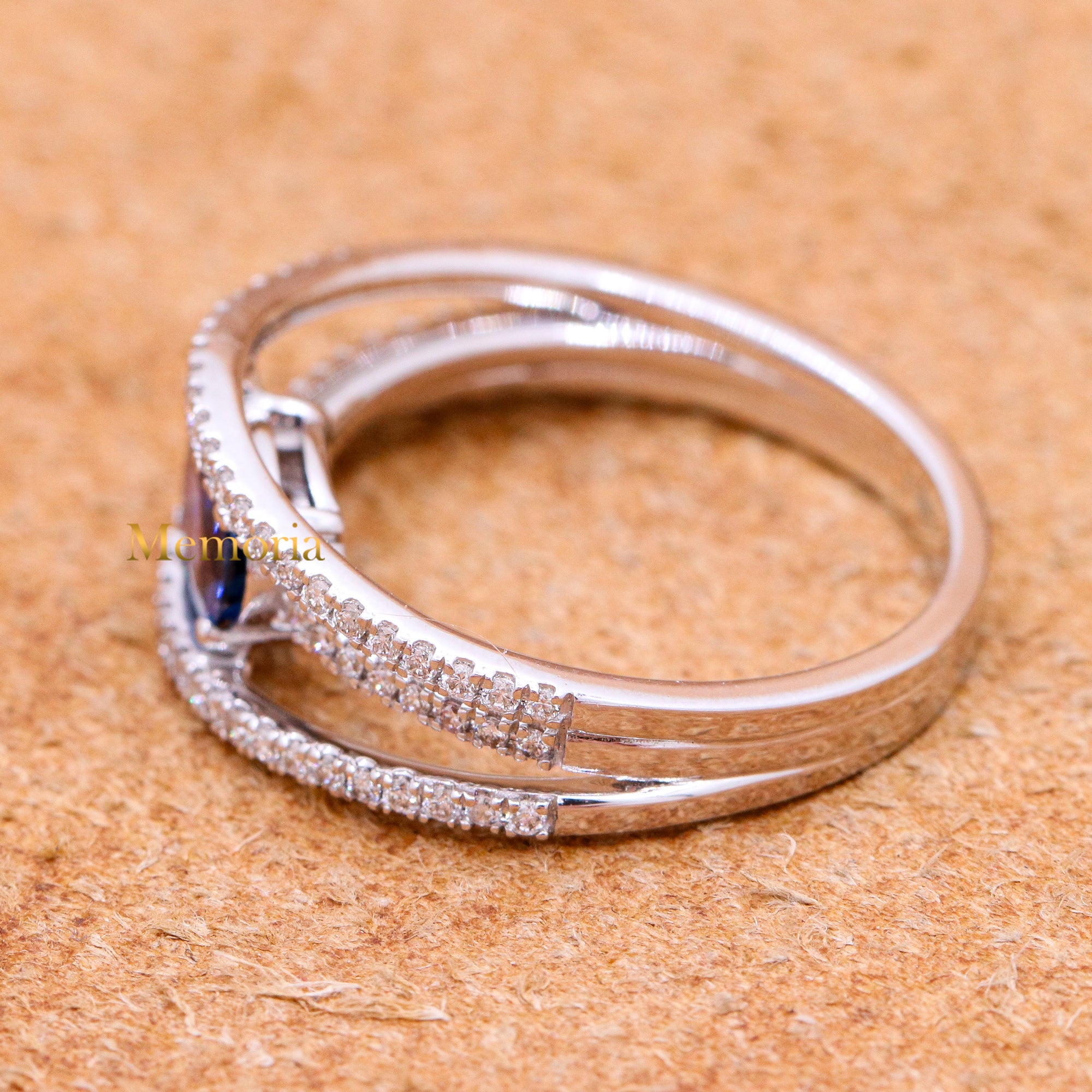 Unique Natural Blue Sapphire Gemstone With Diamond 18k White Gold Ring