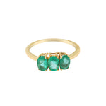 Three Stone Natural Oval Emerald Gemstone 14k Yellow Gold Handmade Ring For Her